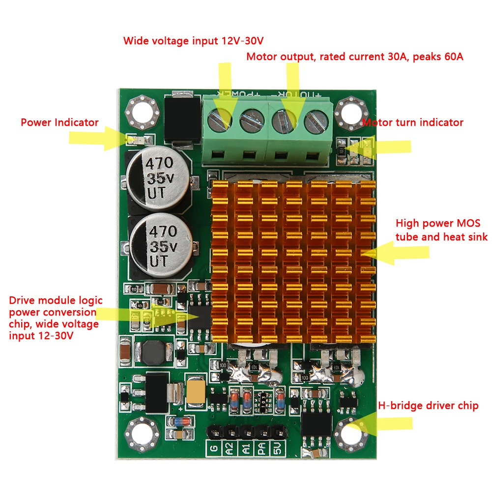 30A модуль привода двигателя постоянного тока высокомощный точный h-мост плата водителя двигателя