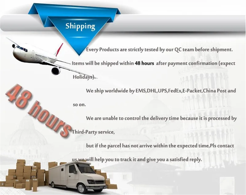 Дорогой друг, обратите внимание на это перед заказом:1. Для российских покупателей, пожалуйста, укажите полное имя получателя: имя, имя отца, фамилию.2. Когда вы получаете товар, если товар сломан или не удовлетворен им, пожалуйста, не открывайте спор, пожалуйста, свяжитесь с нами, мы решим вопрос для вас как можно скорее.