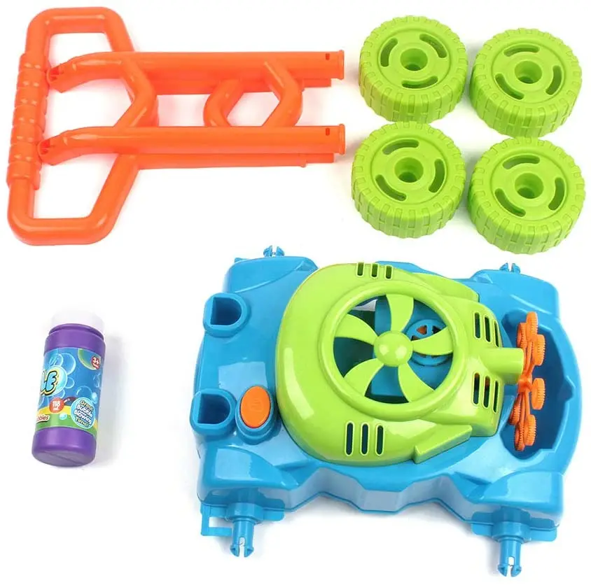 Удары пузырьками с передним вентилятором Разработан с веселой расцветки Крепятся колесики и ручка Дети могут играть с ним в помещении или на открытом воздухе Прочный Пластик В комплект входит бутылка пузырчатого раствора Рекомендуется для возраста: 3 + лет