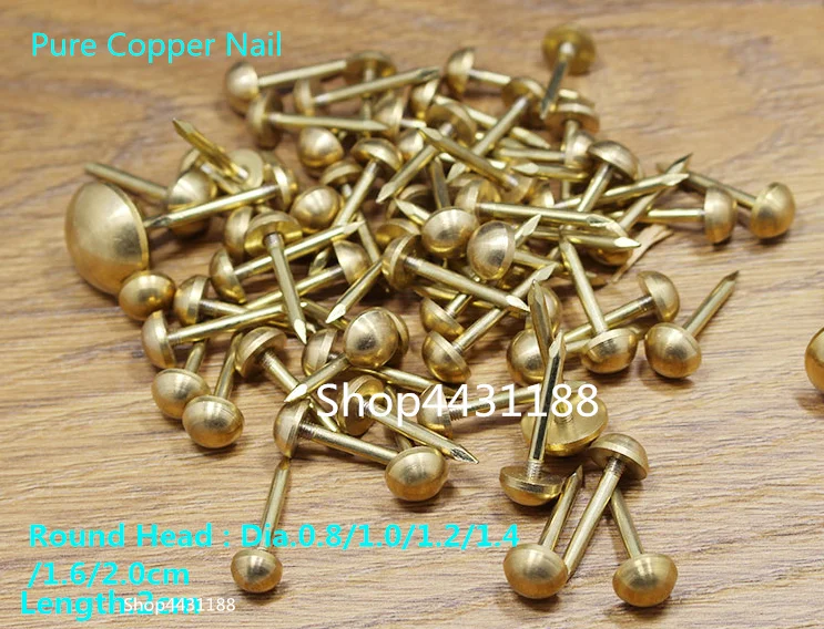 20 штук Dia.0.8-2,0 см, Length2cm чистый Медь заклепки с круглой головкой небольшой Медь ногтей антикварные барабана мебели латунные декоративные гвозди