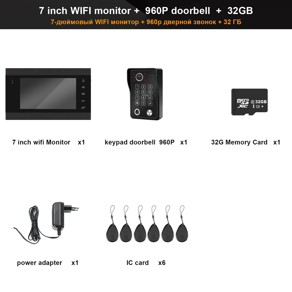 1. Управление в режиме реального времени с помощью смартфона, разблокировка, запись видео/изображений, 2 способа разговора 2. Смартфон подключается к монитору, доступен для наблюдения за дверными звонками или камерами 3. Необходимо установить tuya smart APP на свой телефон 4. Монитор соединяет дверные звонки и камеры проводами 5. Эта система поддерживает 1200TVL / HD 720P / HD 960P дверной звонок и видео вход камеры 6. После успешного подключения, вы можете в режиме реального времени подключить этот видеодомофон по wifi или сети 4G 7. Система контроля Поддержка английский/русский/французский/испанский/португальский/немецкий/русский/Польский/Українська/турецкое/Azərbaycan 8. Поддержка обнаружения движения, запись видео на карту памяти 9. Максимальная поддержка монитора 32 Гб Внешняя карта памяти 10. Монитор автоматически выключает экран после остановки работы в течение 1 минуты, чтобы сохранить электричество