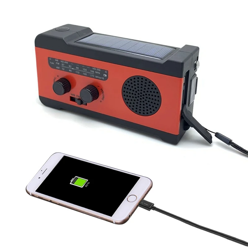 Портативное радио на солнечной батарее AM/FM/NOAA с светодиодный фонариком, мощностью 2000 мА · ч и тревогой SOS для телефона/дома Emergenc
