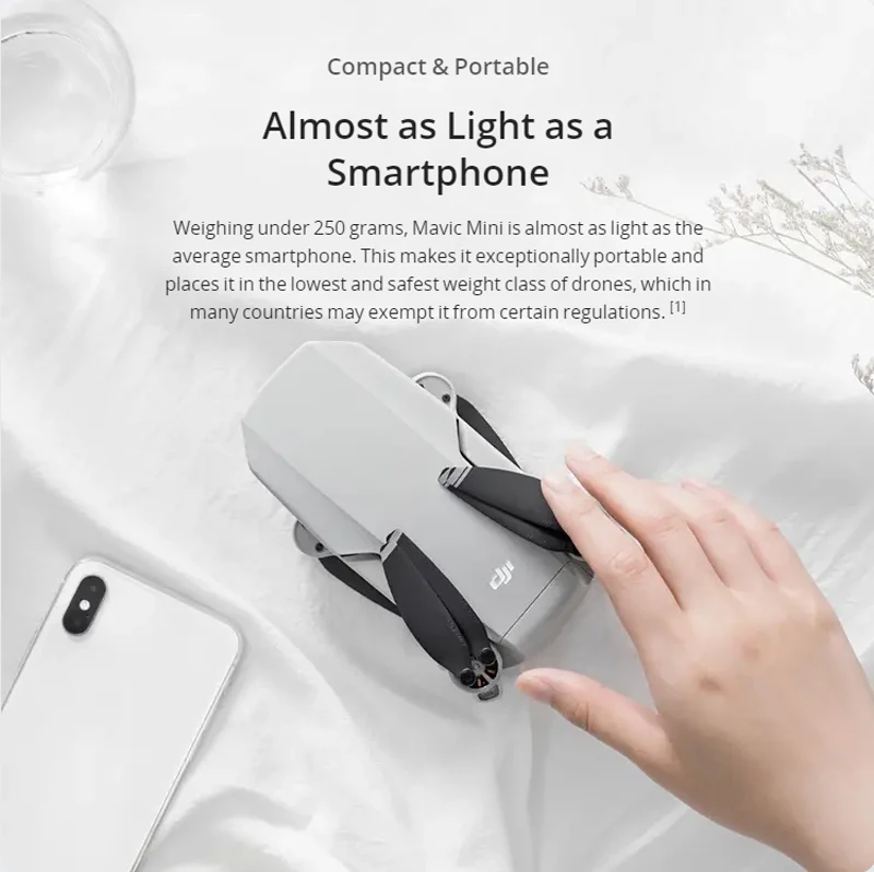 Компактный, но мощный Mavic Mini-это идеальный креативный компаньон, который запечатлевает ваши моменты таким образом, чтобы легко поднять обычный. Вместе с простым в использовании приложением DJI Fly, вы будете наслаждаться упрощенным опытом полета и перспективой, в отличие от любого другого.