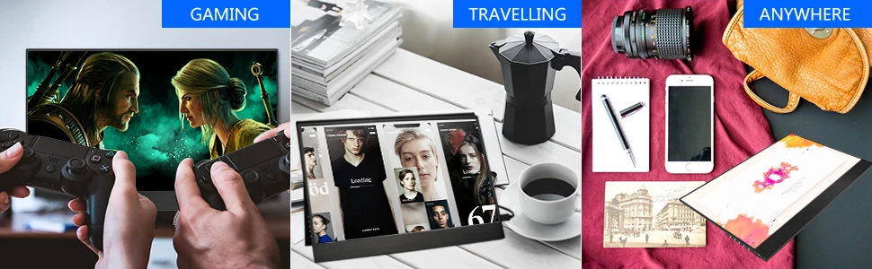 Легко прикрепить 1 или 2 дополнительных монитора к ноутбуку Работа со всеми ноутбуками через Type-C/mini HDMI Работает с PS4 / XBOX One / Switch Гибкий угол обзора 178 ° Превратите смартфоны Android в рабочие станции Легкий и компактный