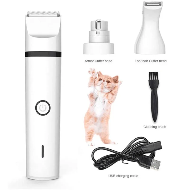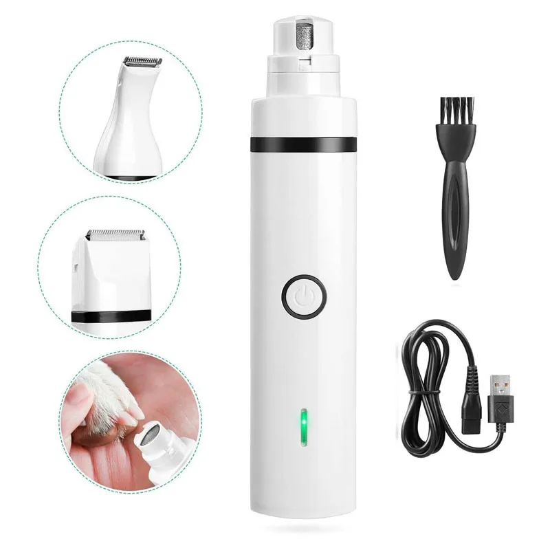 3 различных съемных головки и одно тело: головка для обрезки волос, головка для шлифовки ногтей и головка для обрезки волос. Это идеальный инструмент для ухода за домашними животными! Вы можете обрезать мех вашего питомца без необходимости дополнительного инструмента. Действительно безопасный, удобный, безболезненный инструмент для ухода за лапами для ваших любимых домашних животных.