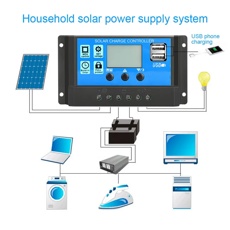 -- Solar battery: Solar charge controller just works with lead-acid batteries: OPEN, AGM, GEL, not for nickel hydride, lithium, or other batteries.