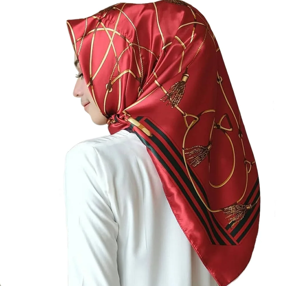Модный мусульманский шелковый шарф 90*90 см, женский квадратный шарф с принтом, головной убор, хиджаб, Женская повязка на голову, малайзийские хиджабы