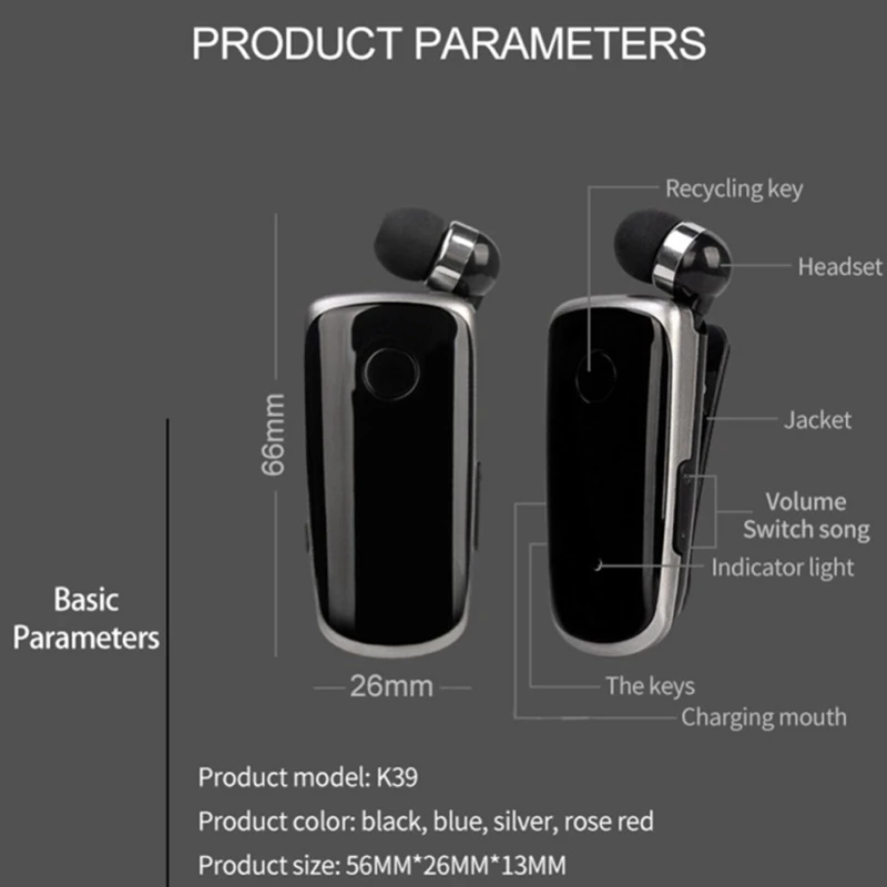 K39 Wireless Bluetooth Headset CSR DSP Chip In-Ear Vibrating Alert Wear Clip Hands Free Earphone