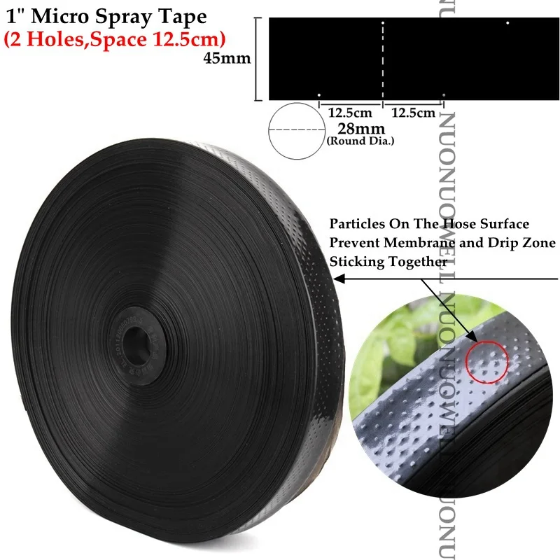 Тип: 1 "N45 микро спрей лента Круглый размер: 28 мм Номинальное рабочее давление: 0.1MPa Тип орошения: микро-спрей или Капельное орошение Посылка: упакована в рулон, 200 метров/рулон