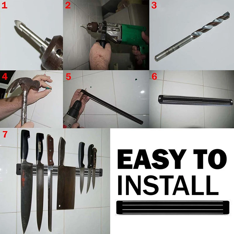 <Простая установка: Эта Магнитная планка инструмента для ножей поставляется с монтажной фурнитурой, поэтому вы можете установить магнитную ленту для ножей в течение нескольких минут.