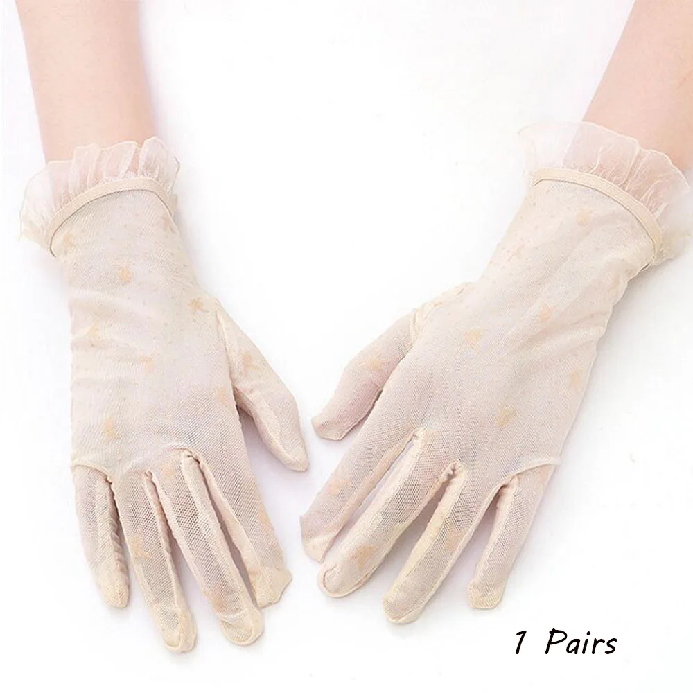 Тип изделия: перчатки Материал: кружево Пол: женский цвет: черный, бежевый, кофейный длина: 23 см (эластичный) Особенности: солнцезащитный крем, Декор, противоскользящий комплектация: 1 пара перчаток