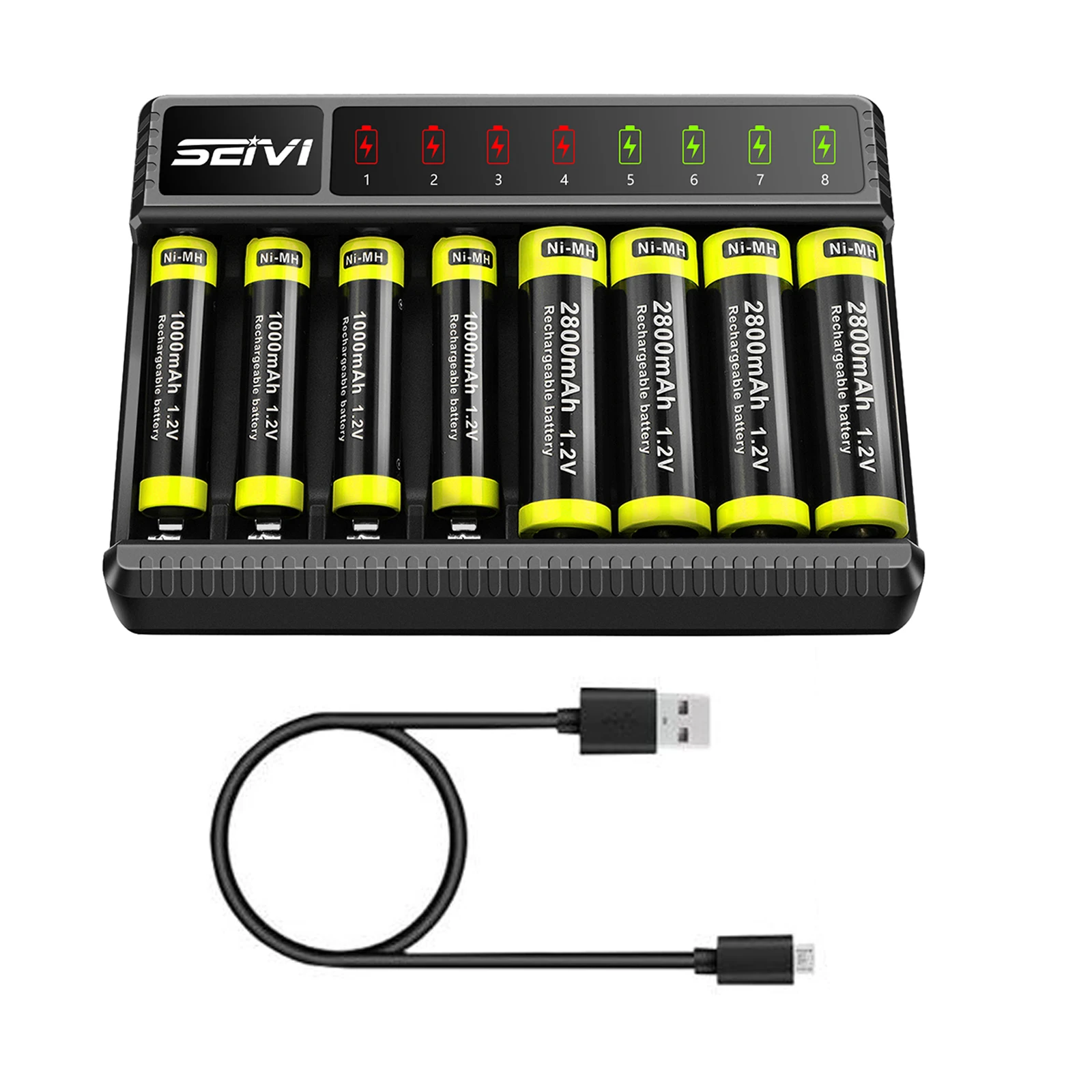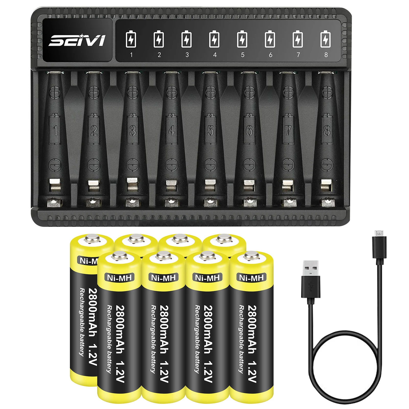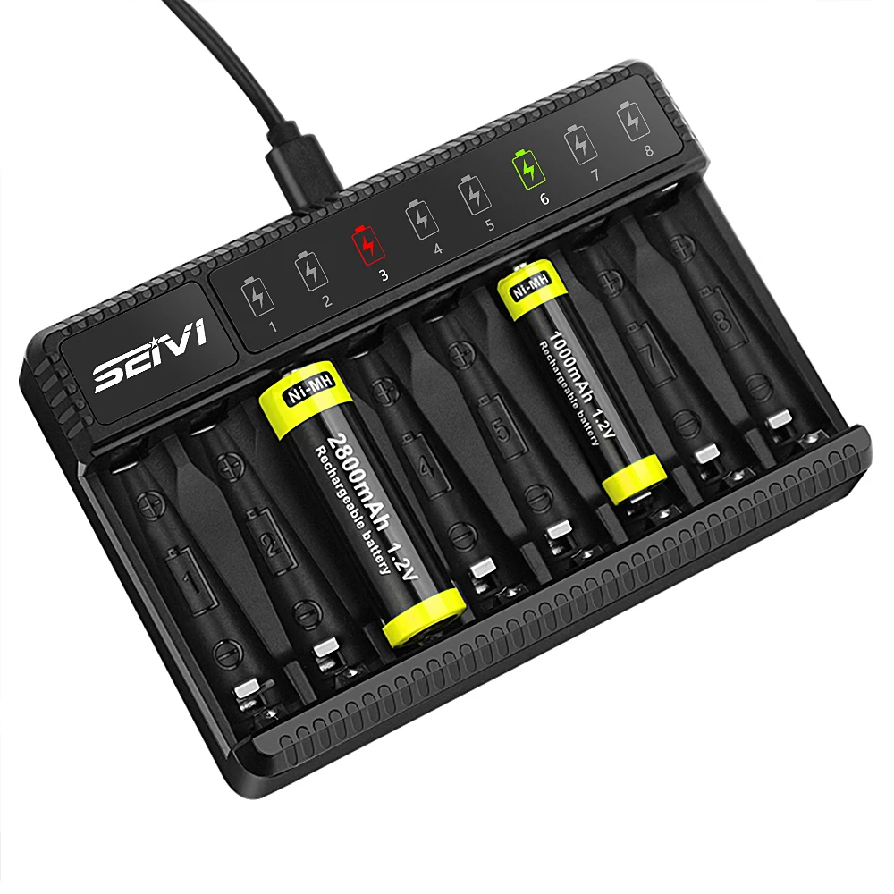 2800 мАч ni-mh аккумуляторная батарея AA AAA зарядное устройство Интеллектуальный 8 слотов с USB кабелем для AA/AAA Ni-MH аккумуляторная батарея 8-CH