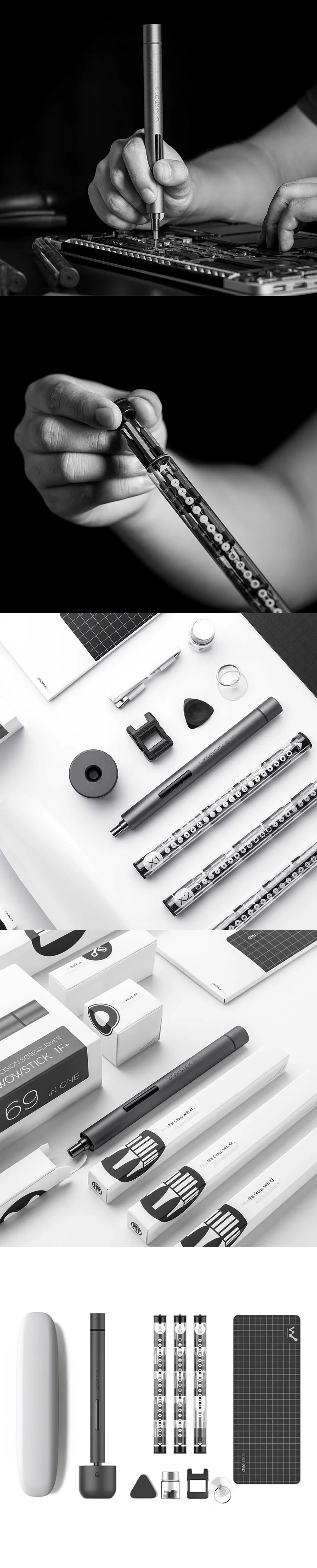 Параметры продукта Модель No. WOWSTICK 1F + Цвет продукта Хост размер 15,8 мм в диаметре, длина 173 мм Конфигурация продукта основной блок, база, коробка для хранения, usb-кабель для зарядки, на присоске Демагнетизатор, тарелки, магнитный позиционирующей пластины, 56 наконечниками отлично, общие винты Крутящий момент Электродвигателя до 0.15N. M, ручной до 3N. М Скорость вращения на холостом ходу, оборот в минуту (200, оборот в минуту (R/MIN) Размер пакета 4*28 мм/4*45 мм (легированная сталь качества) Чтобы обеспечить длительный срок службы до 2 часов непрерывной работы на холостом ходу, оборот в минуту Характеристики продукта разборки винта Режим питания зарядку литиевого аккумулятора Время зарядки 40 минут (статус заряда красным светом, полная мощность показывает зеленый фонарь стоп-сигнала) Одного заряда в режиме ожидания 180 дней + 10-30 дней для одного заряда (не для горячей фиксации-непрерывного использования) Номинальное напряжение 3,7 V Параметры зарядки зарядный входной стандарт: постоянный ток, 5В, 500 мА/ч Как использовать кнопку нажатой кнопку, чтобы с наружной резьбой, на кнопку, чтобы вытащить Метод зарядки Core USB зарядки на задней части главного блока Модель: wowstick 1F Pro (1F +) Источник питания: 3,7 V 10400 литий-ионный аккумулятор Крутящий момент: 0,15/3N. М Скорость: 200r/мин (нерегулируемая) Светодиодное освещение: поддержка (3 шт. LED) Порт зарядки: micro USB Время зарядки: 40 минут Отвертка бит Тип: PH0000/ PH000/ PH00/ PH0/ PH1/ PH2 SL1.0/ SL1.5/ SL2.0/ SL2.5/ SL3.0/ SL3.5/ SL4.0 T2/ T3/ T4/ T5/ T6/ T7/ T8/ T9/ T10/ T15/ T20 P2/ P5/ P6 H0.7/ H0.9/ H1.3/ H1.5/ H2.0/ H2.5/ H3.0/ H4.0 Y0.6/ Y1.0/ Y2.0/ Y2.5/ Y3.0 SQ0/ SQ1.0/ SQ2.0 U2.0/ U2.6/ U3.0 Треугольник: 2,0/2,3/2,5/3,0 Иглы: 0,8 (лоток для сим-карт штифт) W1.5 (4x45 мм) screwdirver: PH0/ PH2/ SL2.0/ H2.0 Бит Материал: S2 легированная сталь Отвертка: 15X17 3 мм/0.6X6.8inch (Д × л) Вес нетто: 105 г Особенности: 1) Оригинальный Xiaomi Mijia wowstick 1F + отвертка и произведенный wowstick 2) светодиодное освещение и литиевая батарея приведенный в действие функции вернусь, так же, как и wowstick A1 и Wowstick 1S 3) самой высокой скорости движения во всех wowstick sereies электрическая отвертка до 200 оборотов в нагрузке-бесплатно, который является абсолютно мощности достаточно для ваших электронных устройств, ремонтных работ, таких как смартфон, RC дронов, джойстик, компьютера, камеры и т. д. 4) 10400 литий-ионная аккумуляторная батарея обеспечивают scrw или скрутите энергоснабжения приводного блока с ручным и автоматический режим работы, максимальный крутящий момент (вращающий момент до 0,15/3N.m Крутящий момент обеспечивать высокое эффективность работы 5) отнестись к выбору внимательно; 56 шт. S2 насадок из сплава в комплект входит Phillips, с прорезями, шестигранные, Trox, 5-точечная, y-типа, квадрат, треугольник, квадрат, бренд u-тип до совместим с большинством электронных устройств 6) тонкий корпус из алюминиевого сплава с дизайном пера, легкий для того чтобы сжать и портативный 7) также включает в себя wowpad, на присоске, отвертка, база, намагничиватель и портативный магнитный позволит вам легко носить с собой и использовать. 8) один год для вас, покупайте с уверенностью Посылка включает в себя: 1X Wowstick 1F Pro электрическая отвертка 1X Wowpad 1X портативным чехлом 1X отвертка база 1X на присоске 1X треугольник с треугольником открывалка для бутылок 1X намагничивающее устройство 1X набор винтов 1X 60 мм удлиннительный стержень (подарок) 56X 4 мм отвертка бит Wowstick электрическая отвертка 1F + Двойной эффективность нового литиевая батарея питания разобрать