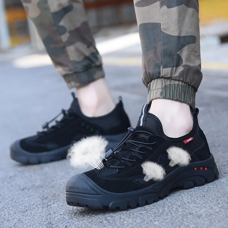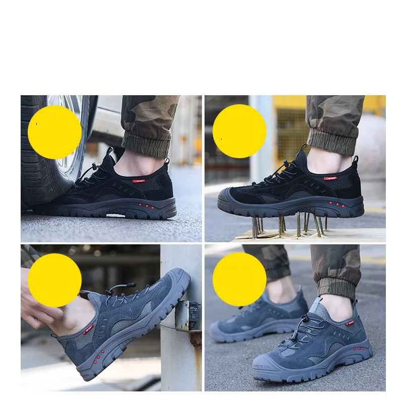 Сверхлегкая безопасная обувь: она похожа на вес пары кроссовок. Они помогут вам работать счастливо весь день, не выматывая ноги. С очень мягкими стельками и высокой эластичной подошвой ваши ноги безопасны и удобны. Трикотажный верх очень мягкий, сохраняет ваши ноги удобными и дышащими.