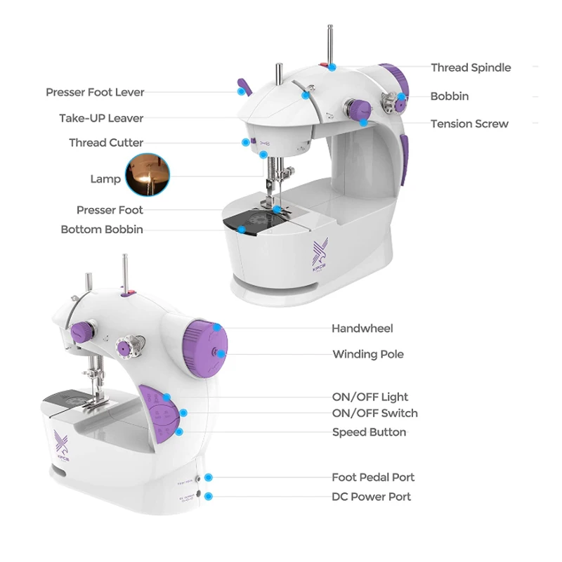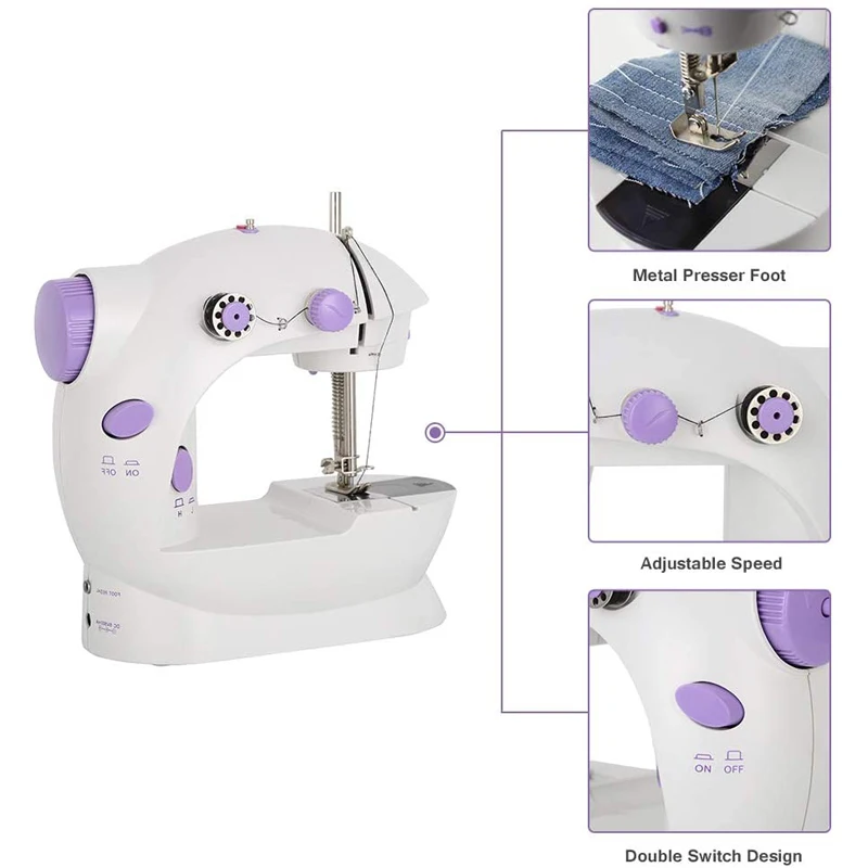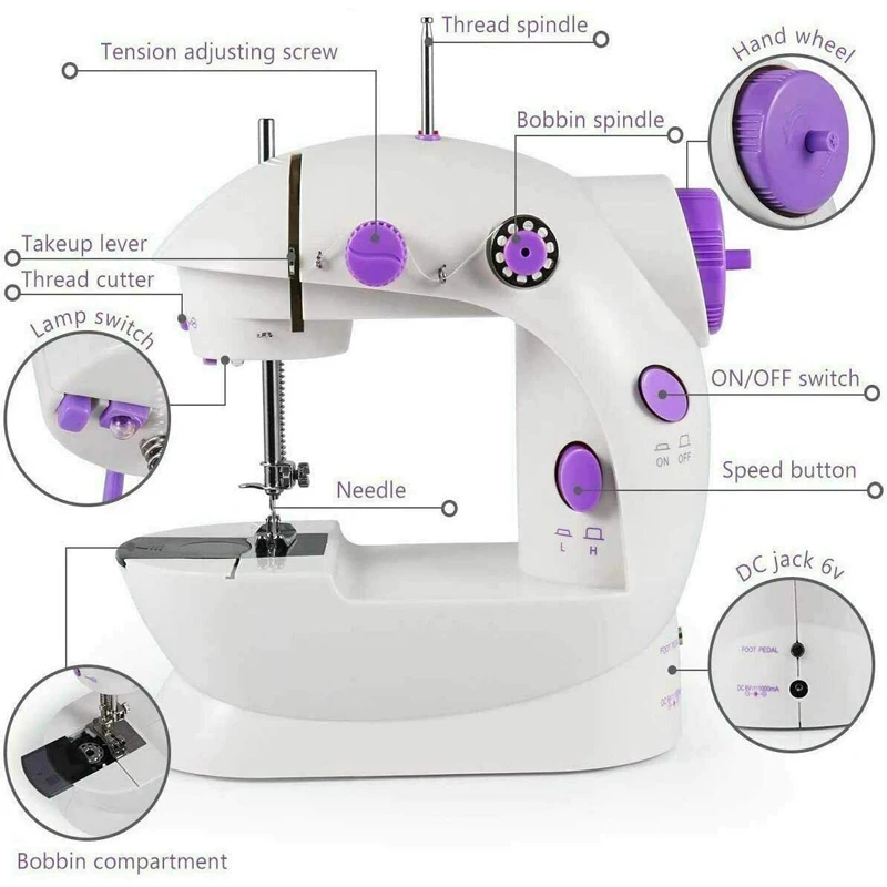 Мини 2-х скоростная швейная машина предлагает двойные нитки и идеальный контроль стежка. Для чего угодно: от шелка до денима; Ручной переключатель или педаль для начала. Верхнее падение-в бобине обеспечивает легкую резьбу; Автоматическая Перемотка резьбы. Включает в себя 6 бобин, педаль и считыватель. Идеально подходит для многих домашних швейных проектов, таких как изменение и создание одежды, изготовление, стеганое шитье, домашний декор и многое другое.