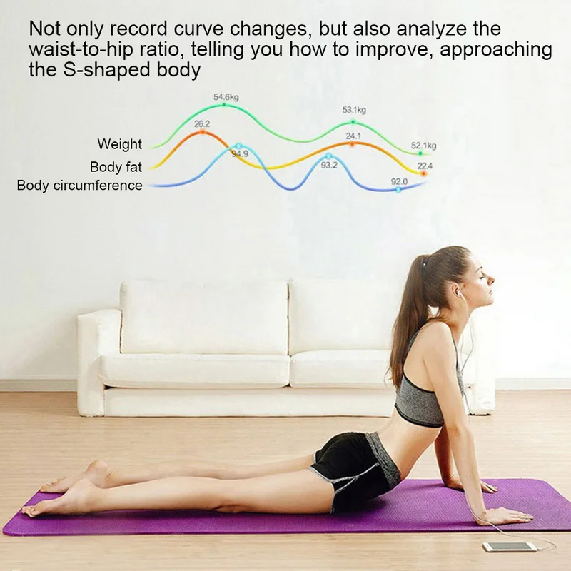 << 15 essential measurements: The scale precisely measures body weight, body fat, water, BMI, muscle mass, bone mass, visceral fat and protein up to 15 data details.