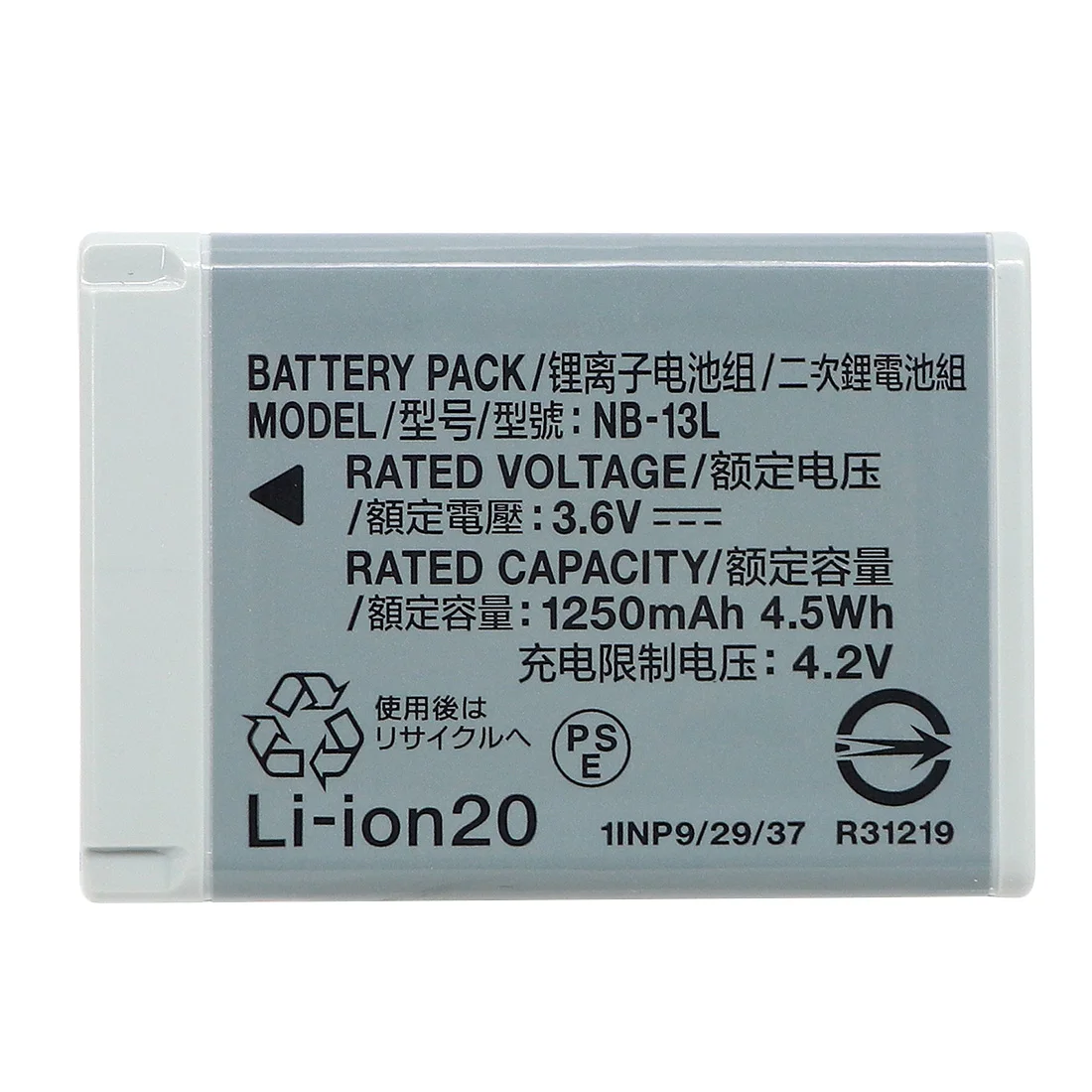 Новая в полиэтиленовом пакете посылка (навальный пакет) Есть две версии аккумулятора, которые не влияют на использование Оригинальное качество идеальное декодирование. Идеальная совместимость с вашей камерой. Информация о продукте: Тип продукции: литий-ионный аккумулятор NB-13L Вольт: 3,6 V Емкость: 1250 мАч (литий-ионный) Совместимость с: Для Canon CB-2LH CB-2LHE зарядное устройство Посылка включает в себя: 1 x оригинальный NB-13L литий-ионный аккумулятор Подходящие модели: Для Canon G7X2 G5X G9X G9X Mark II SX620 G7X II G7X III SX720 SX730 SX740