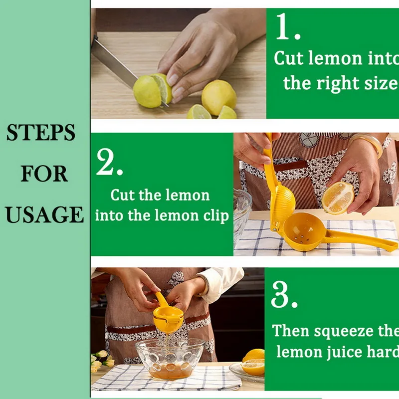 << Quickly use: Simply place half of a lemon in the squeezer with the cut side facing down, the juice will drain directly out of the holes.