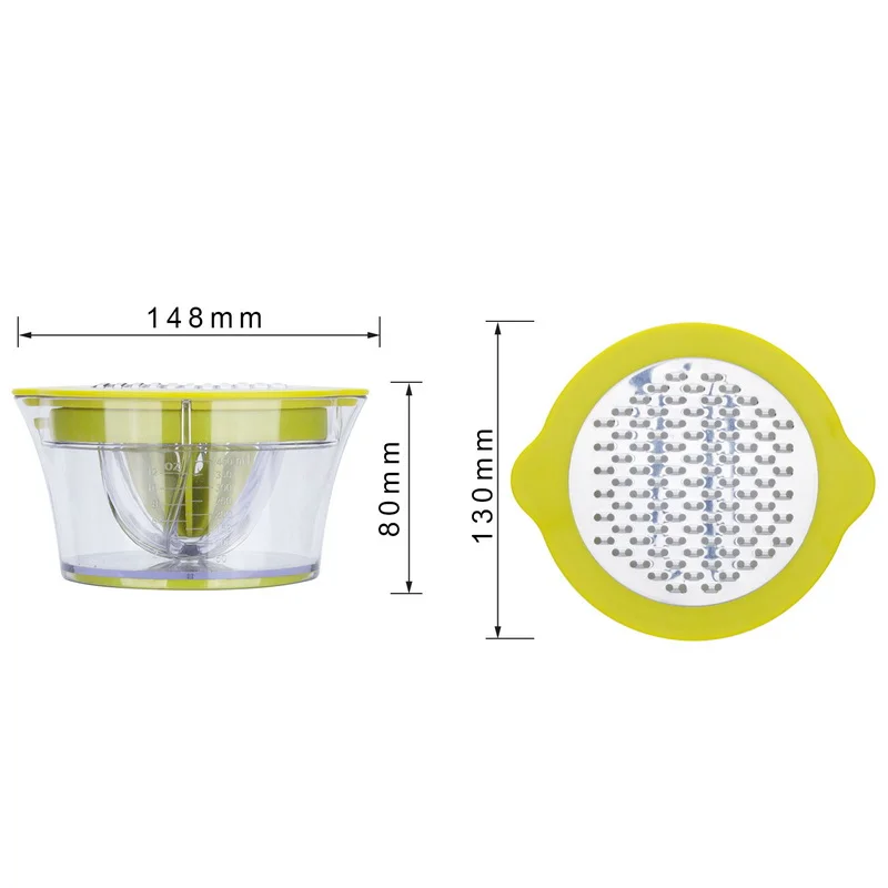 - Multifunctional - 4 in 1 design, orange reamer, lemon reamer, grater and clear container, easily and quickly assembled and disassembled to meet your needs. Its a great manual juicer for your kitchen.
