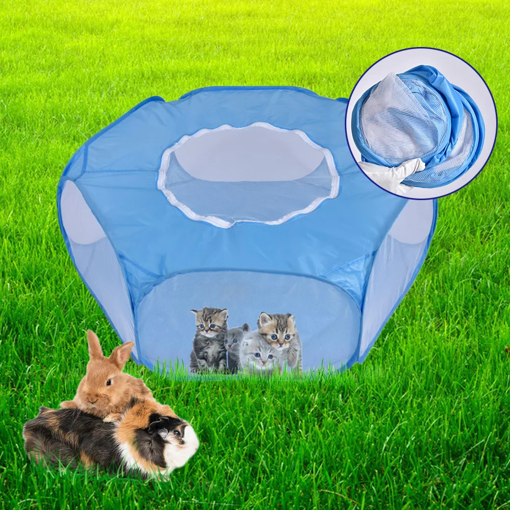 - Automatic opening and no need for complex splicing and the fence will unfold automatically, built in frame pops open in seconds.Folds back flat when not in use for easy carrying and storing.
