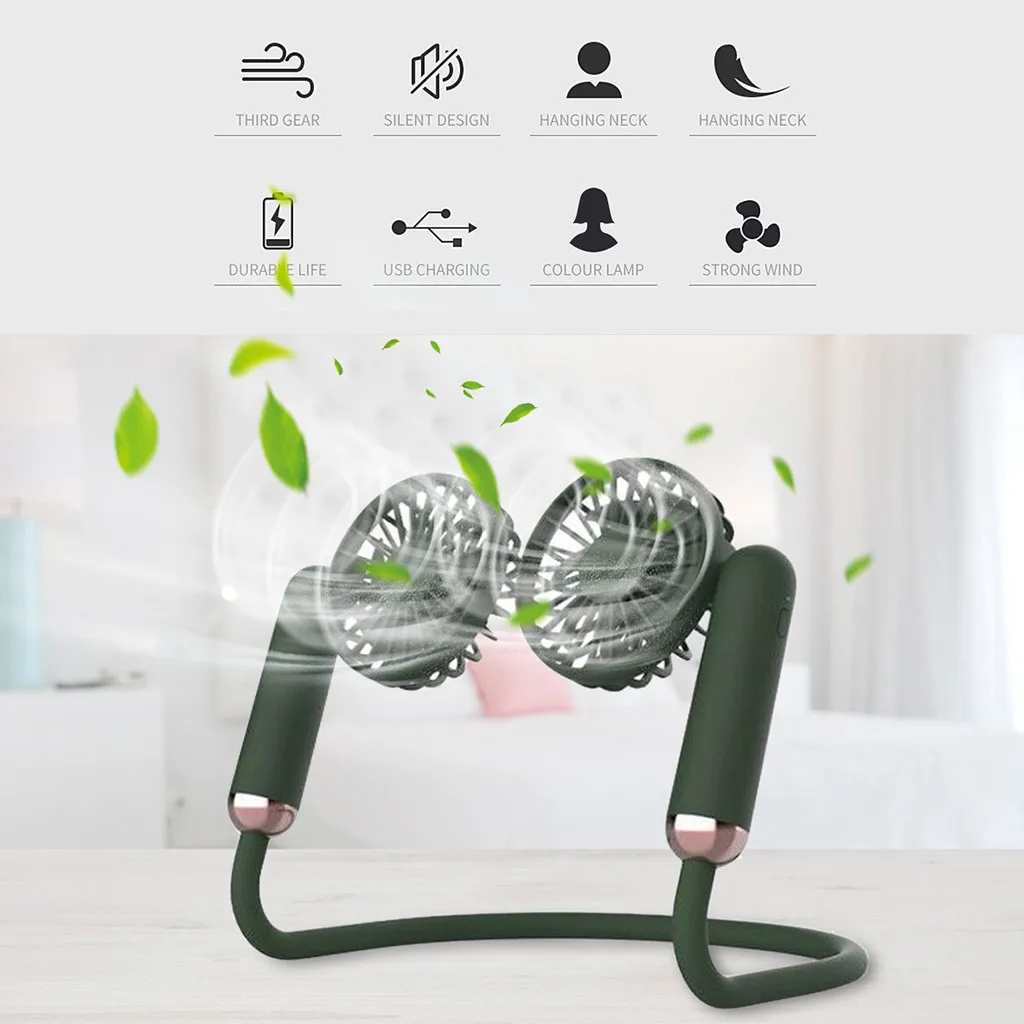 Портативный USB вентилятор Портативный Перезаряжаемые шейным без застежки на лямке вокруг шеи Стиль 2 в 1