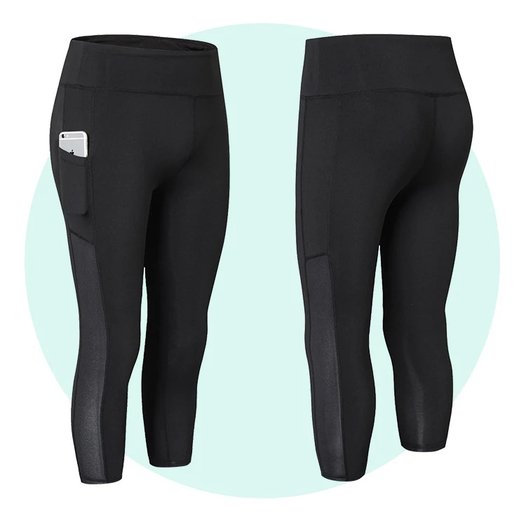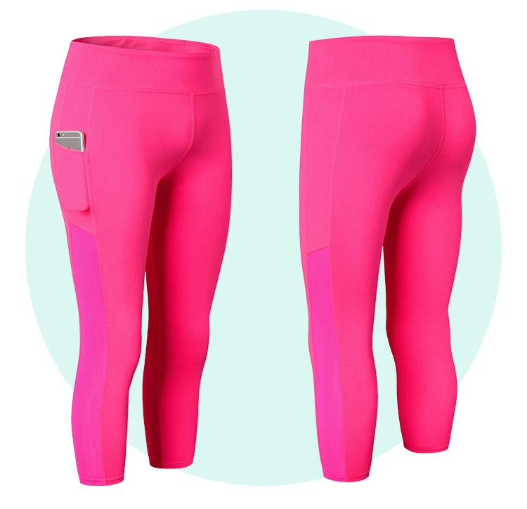 Капри, колготки для фитнеса с карманами длиной 3/4, облегающие
