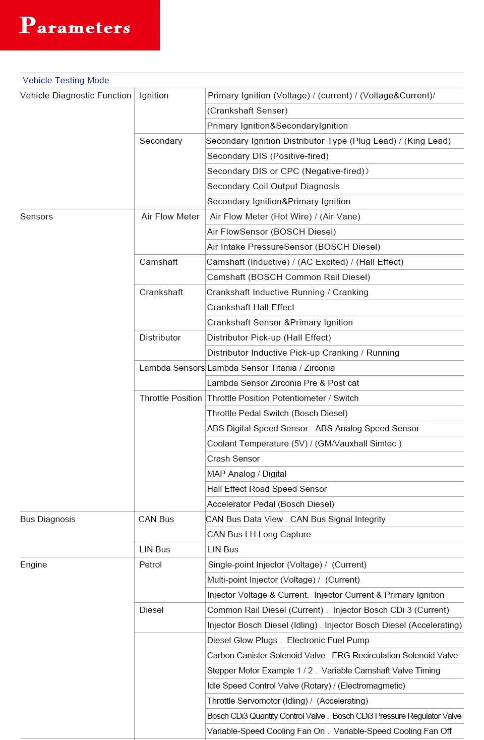 ● С более чем 80 видами тестирования автомобиля и сканирование qr-кода на задней части устройства может открыть видео файлы помощи, чтобы показать вам, как тестировать транспортные средства.