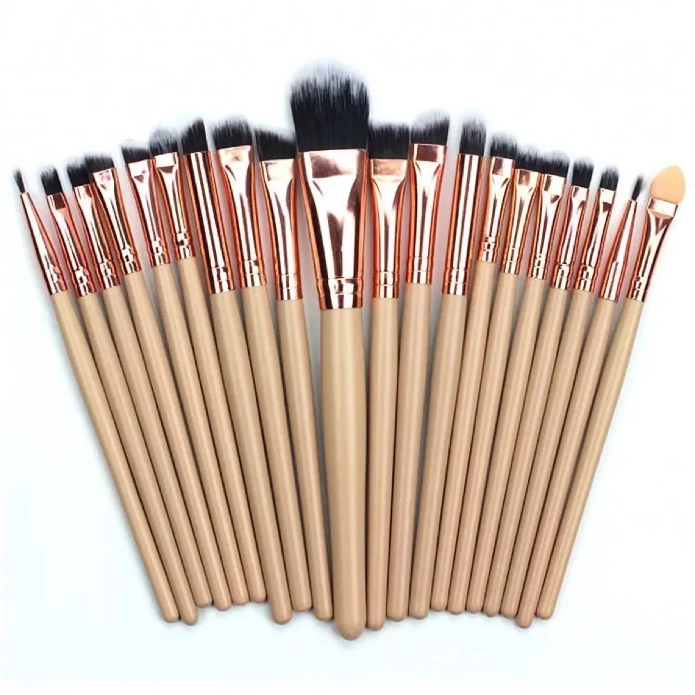 Product category: Makeup set brush set brush count: 20 pieces Bristle material: artificial fiber brush handle material: wooden handle brush handle specification: long rod hair length specification: 2cm total length specification: 17.5cm packing: opp bags applicable people: everyone