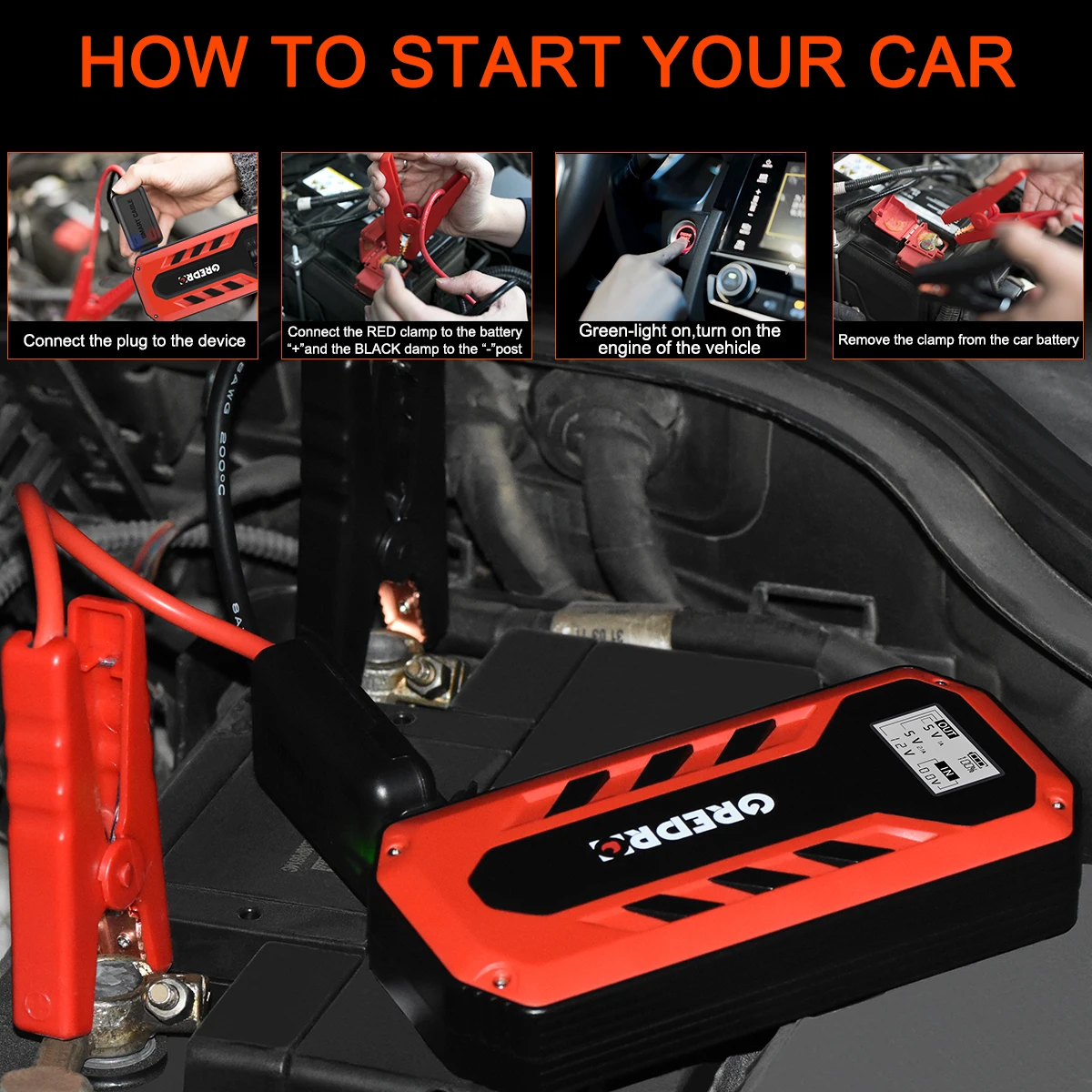 Наши Пусковое устройство для стартера способен запускать все виды 12V транспортных средств (для газового двигателя до 6.5L для дизельных двигателей до 4.0L) , работ, для мотоцикла, RV, трактора, светильник грузовых автомобилей малой грузоподъемности, газонокосилка, Грузовые Фургоны, квадроциклы, снегоходы, Масляная лодка и т. Д. Каждый водитель должен иметь чехол для аварийной ситуации.
