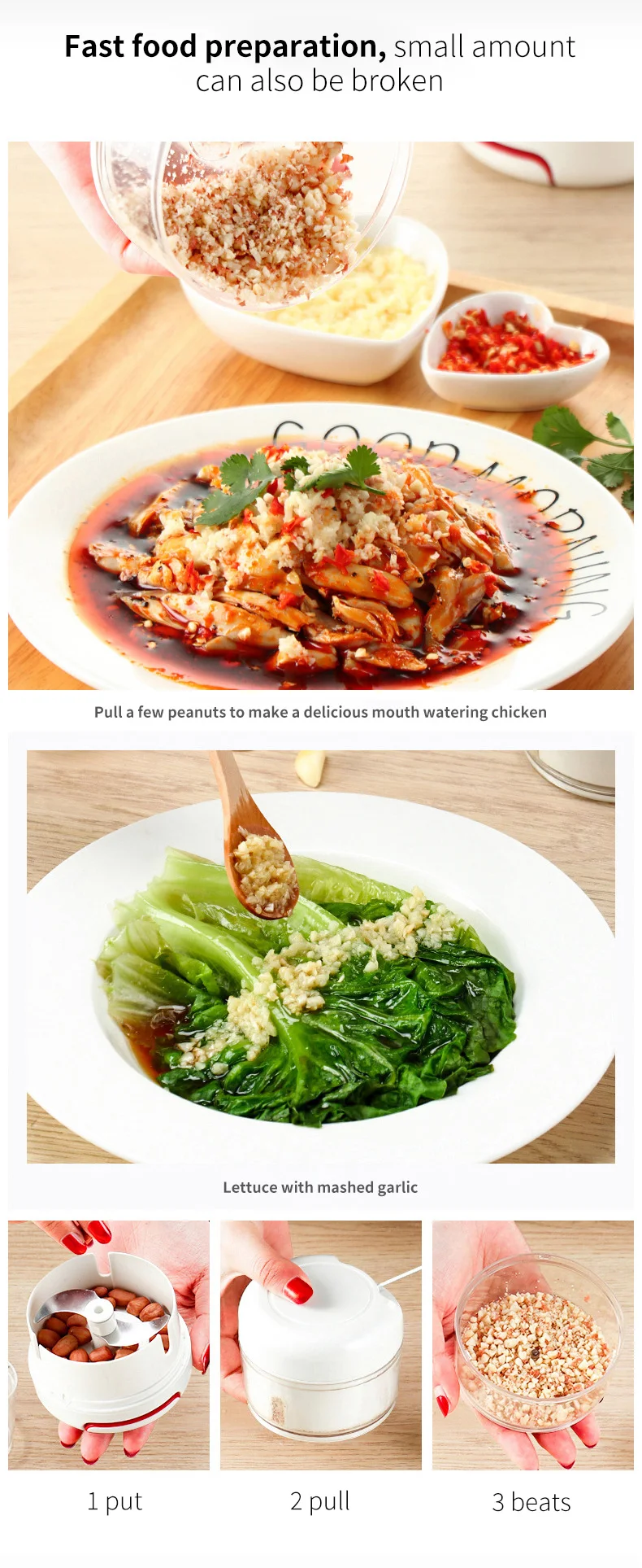 Продукция: мини-измельчитель овощей Характеристики: измельчитель может легко нарезать различные продукты. Инструкция по эксплуатации: 1. Тщательно поместите лист в центр прозрачного контейнера. 2. Нарежьте пищу на кусочки и положите в миску. Не ставьте слишком много или слишком мало, и мы ценим половину для более эффективной работы. 3. Перед разделкой накройте крышку чаши. 4. Удерживайте крышку одной рукой и вытяните измельчение продуктов веревкой с другой. 5. Сначала Тщательно удалите лезвия, а затем удалите нарезанную пищу. Детское питание: 1. Откройте Майнер, установите вал лезвия, а затем пара кубиков сквоша. Необходимо, чтобы добавить немного воды или молока подарит Вашему ребенку пищевых продуктов. 2. Закройте крышку и потяните за веревку. 3. После поворота крышки вал лезвия будет отделен от контейнера с крышкой. Вырезать ингредиенты доступны.