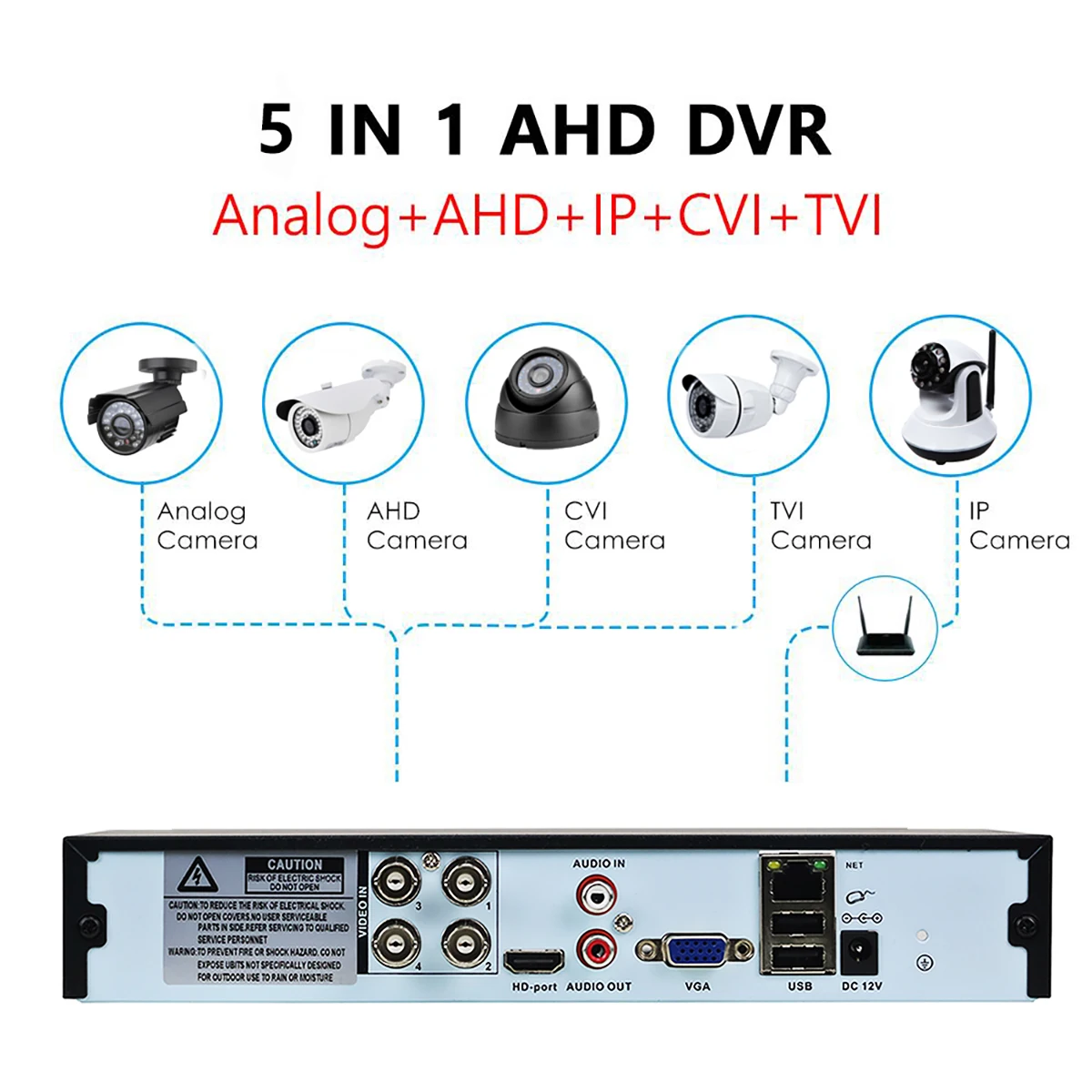 5 в 1 = режим AHD + аналоговый режим + сетевой режим + режим TVI + режим CVI