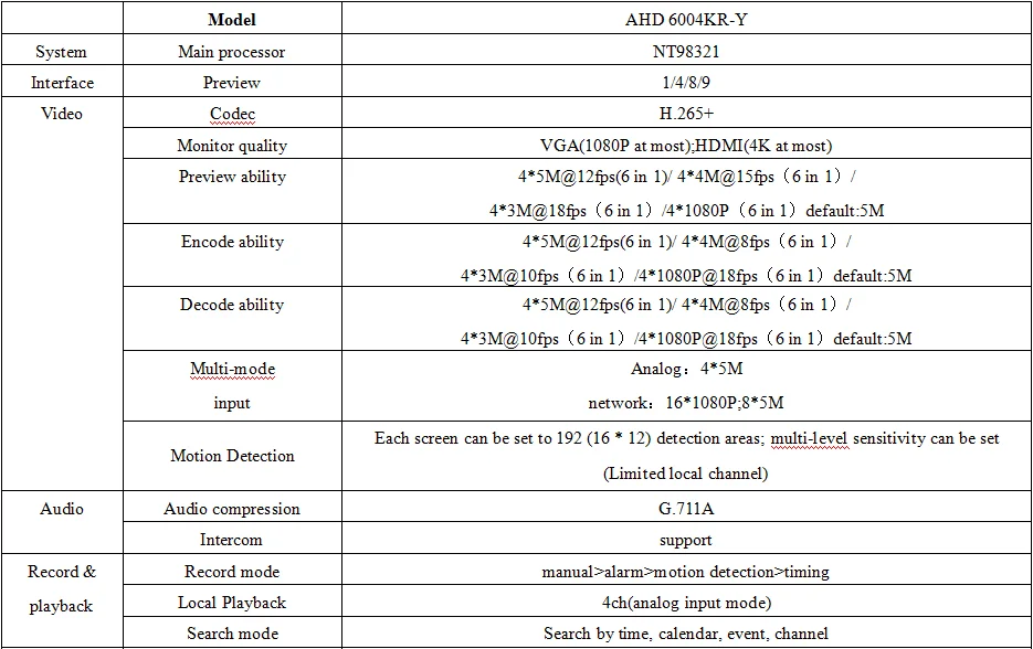 Поддержка AHD, TVI ,CVI,CVBS,IPHD видео вход;