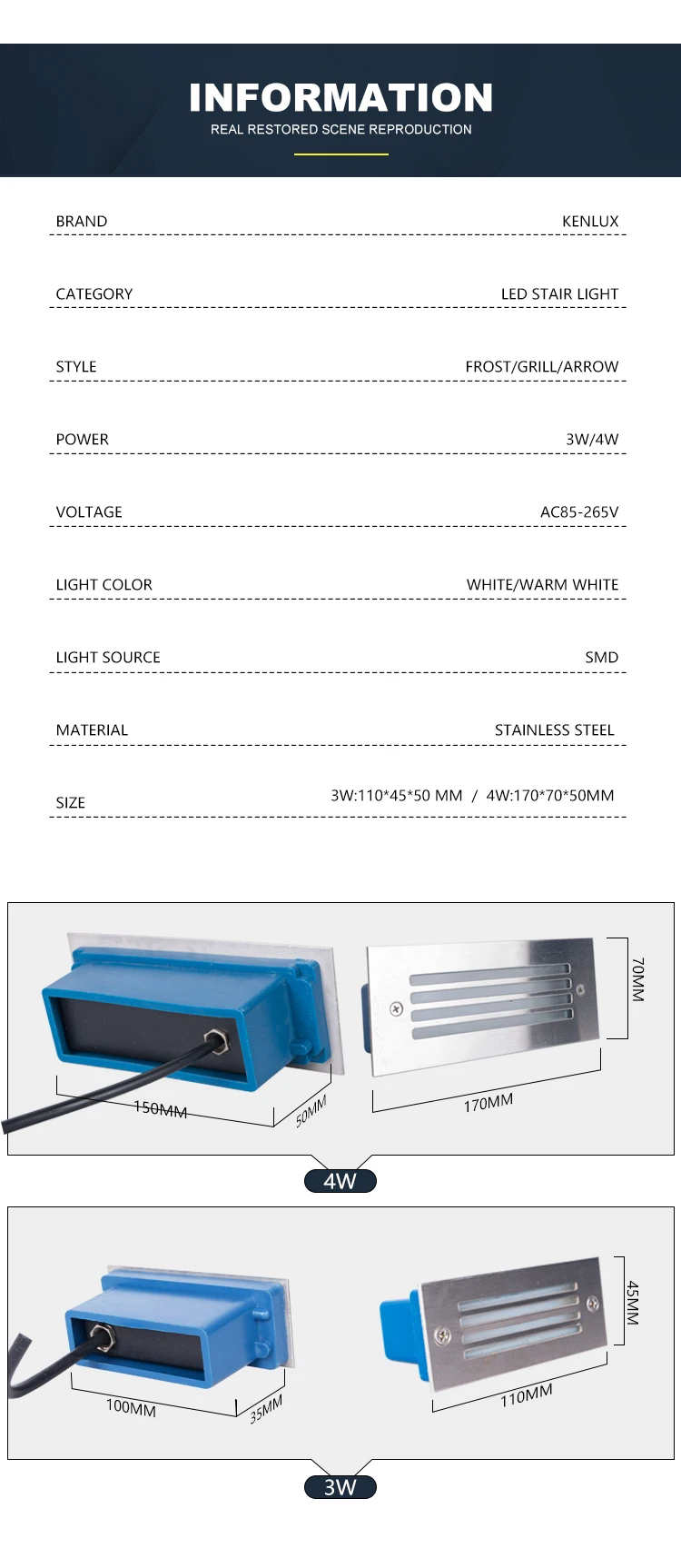 Kenlux светодиодный светильник для лестниц, встраиваемый светильник s 3W 110mm / 4W 170mm AC85-265V, алюминиевый водонепроницаемый настенный светильник высокого качества