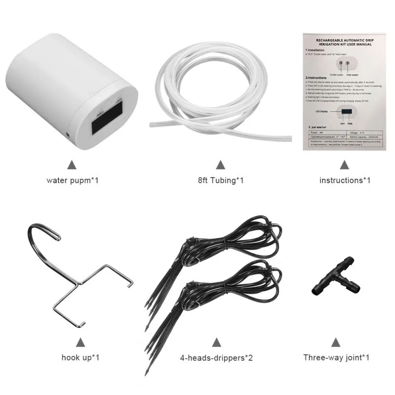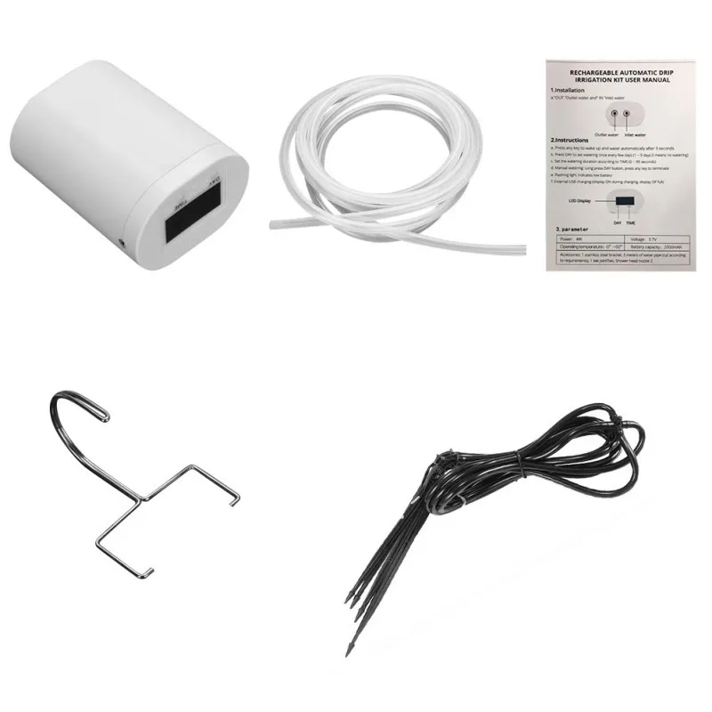 Простая установка и эксплуатация: всего 2 шага, чтобы настроить автоматическое устройство орошения. Правильное управление временем полива (секунд). Время левого контроля (дней). Вы можете отрезать 10 метров длинной трубки в соответствии с вашими требованиями без движущихся горшков. Интервал времени составляет 1-9 дней, а время полива-1-99 секунд.