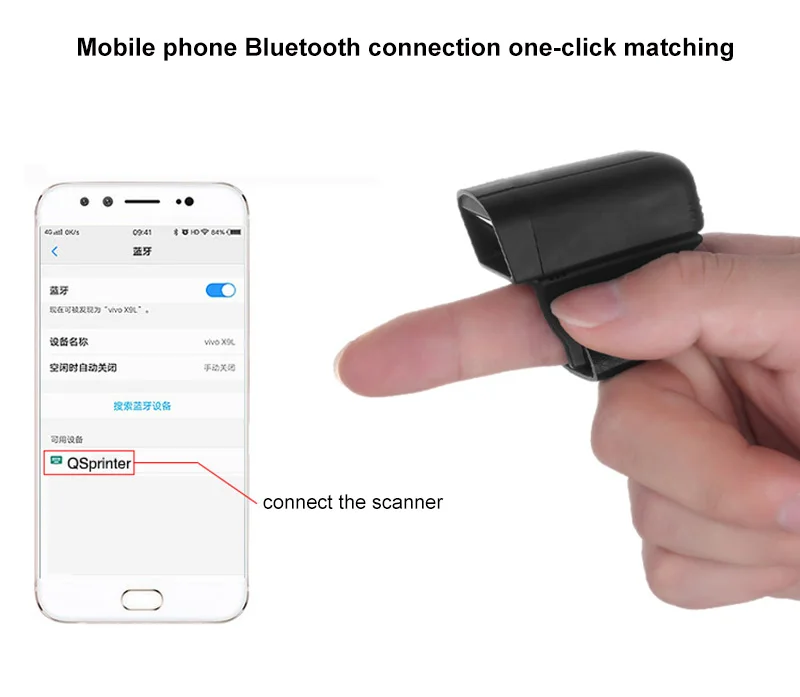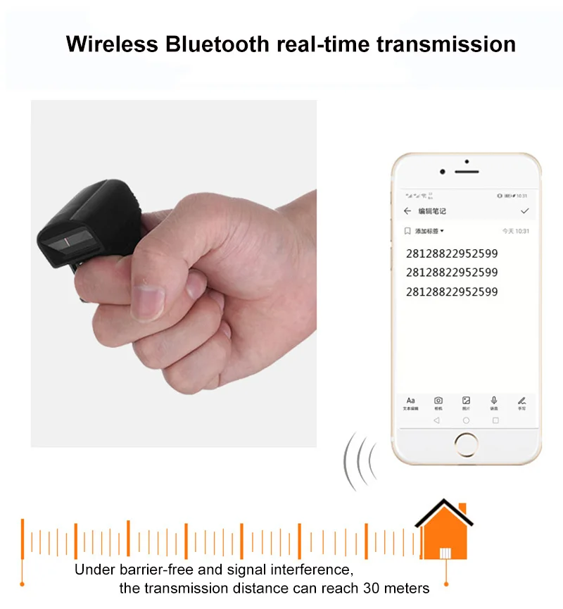 Характеристики продукта: считыватель штрих-кодов с кольцом Визуальное расстояние беспроводной передачи около 50 м Встроенная поддержка флэш-памяти для HTTP Офлайн сканирование может хранить более 10000 штрих-кодов Поддерживает обычный режим загрузки в реальном времени/режим инвентаризации и свободно переключается Поддержка устройства Android/IOS/Windows Поддержка протокола HID Встроенный зуммер и вибромотор Поддержка сканирования 1D лазер/инфракрасный штрих-код и qr-код Супер Мини размер, стильный внешний вид, легко носить с собой Ультра-низкая мощность, может установить время сна