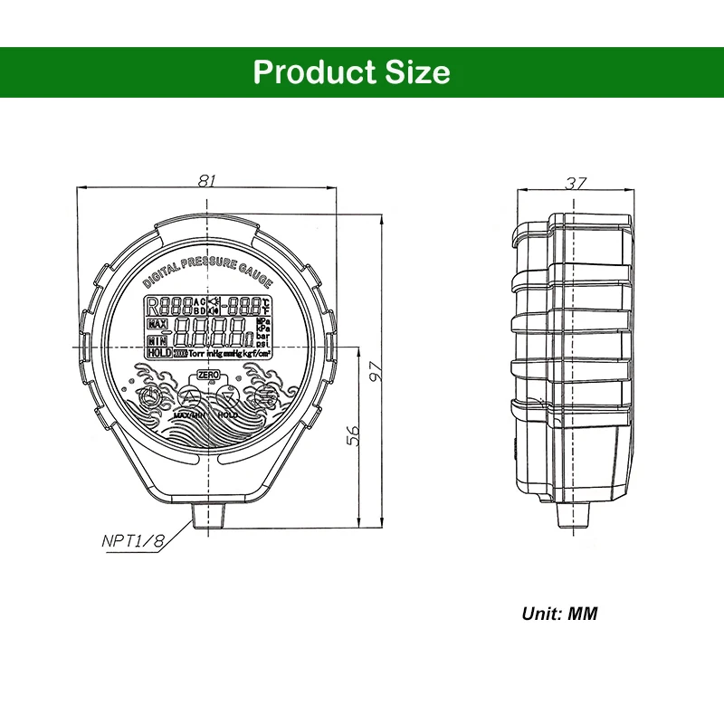 Манометр, инжектор хладагента, диапазон:-0,1 ~ 5.0MPA Цифровой манометр LCD. Изготовлено с помощью высокоинтегрированной схемы. Манометры не имеют подвижных частей, длительный срок службы, В качестве источника давления используется высокая стабильность датчика давления, Высокая точность измерения, широко используется во всех видах гидравлических, Поводы пневматического измерения, Такие как: медицинское оборудование, оборудование и оборудование, пневматическое оборудование, Например, может заменить старую таблицу указателей давления для реализации сцены.