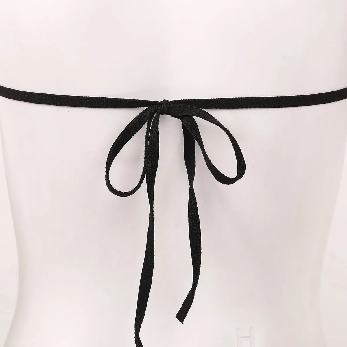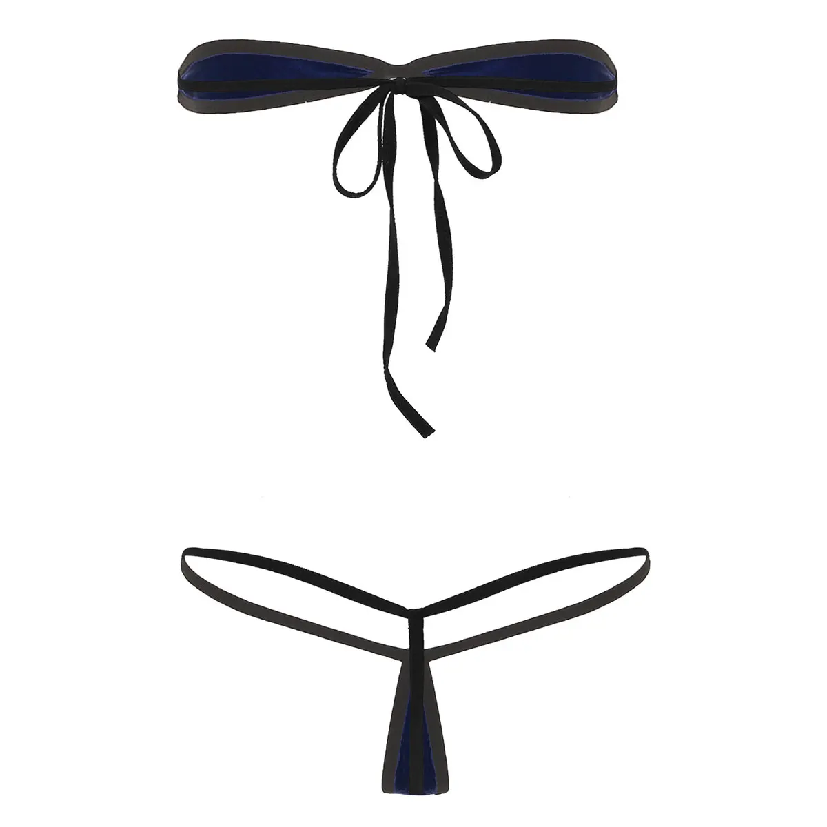 2 шт., женский сексуальный комплект нижнего белья, без бретелек, с галстуком-бабочкой, Эротическое, минимальное покрытие, микро бикини, бюстгальтер-труба, топ с стринги, трусы, нижнее белье