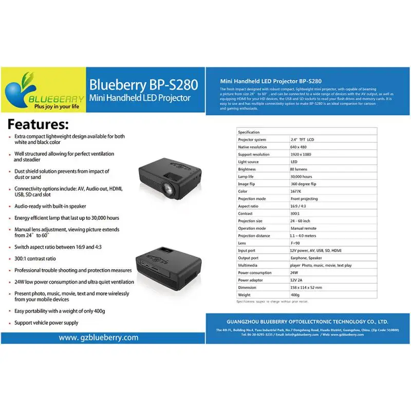 Система проектора: 2.4TFT LCD