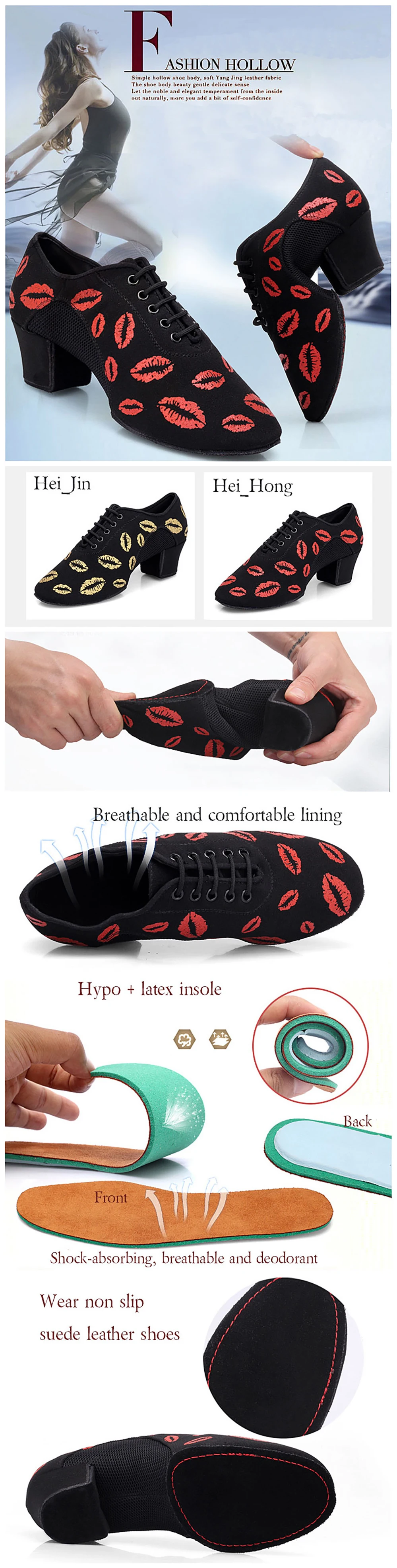 USHINE BD65 каблук 5 см Золотые губы Ткань Оксфорд ChaCha учитель танцевальная обувь бальные танцы печать латинские балетные танцевальные туфли женская обувь