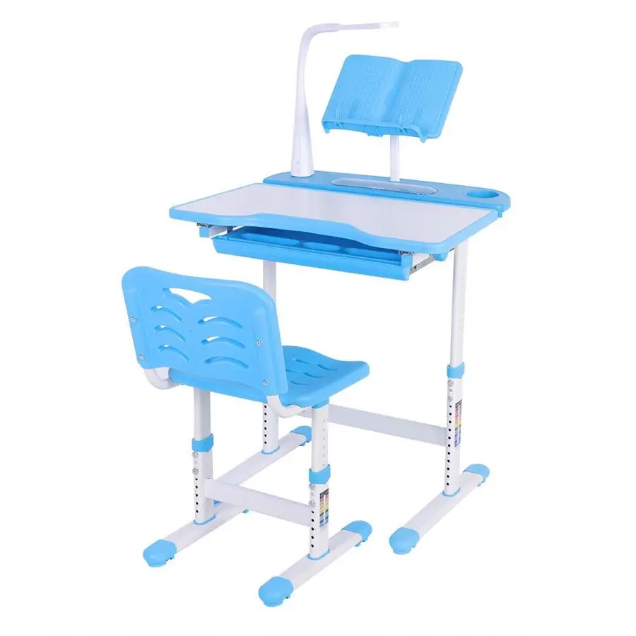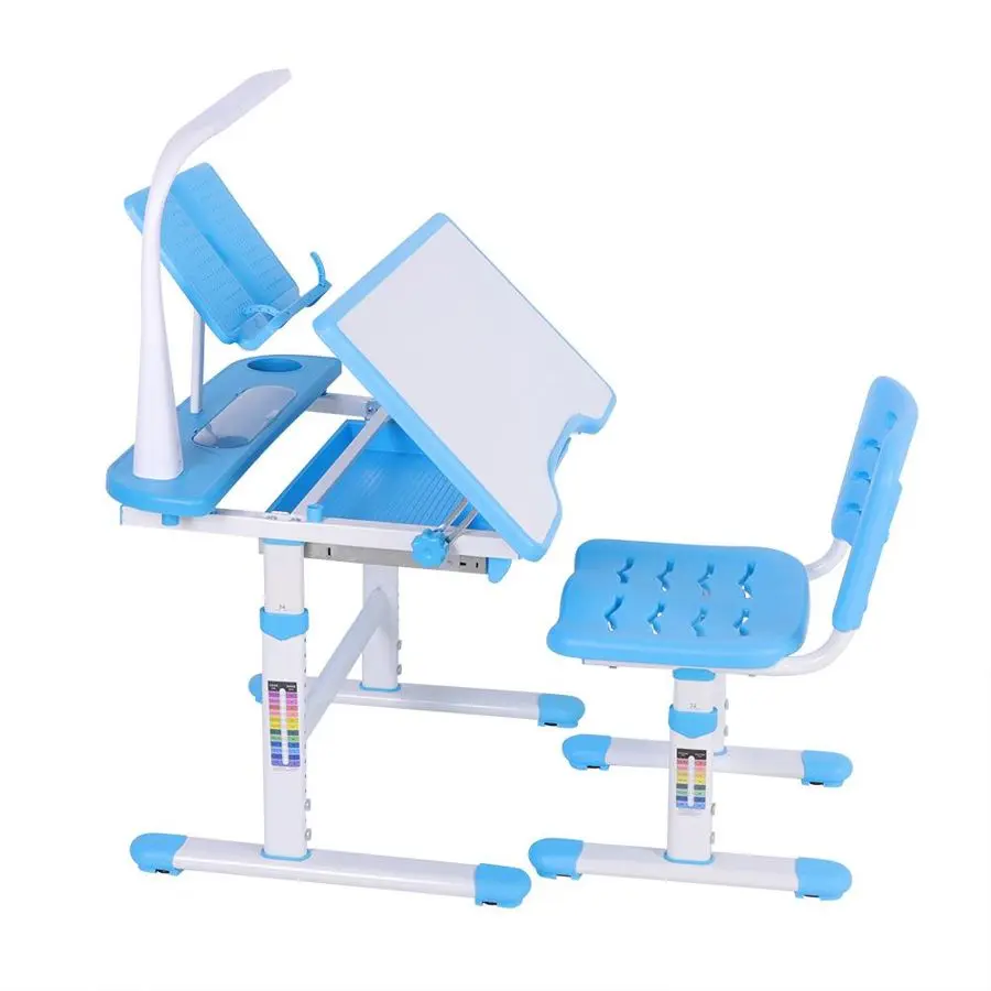 Регулируемая высота детский стол и удобный стул набор с лампой дети учебный стол 100 ~ 240 В