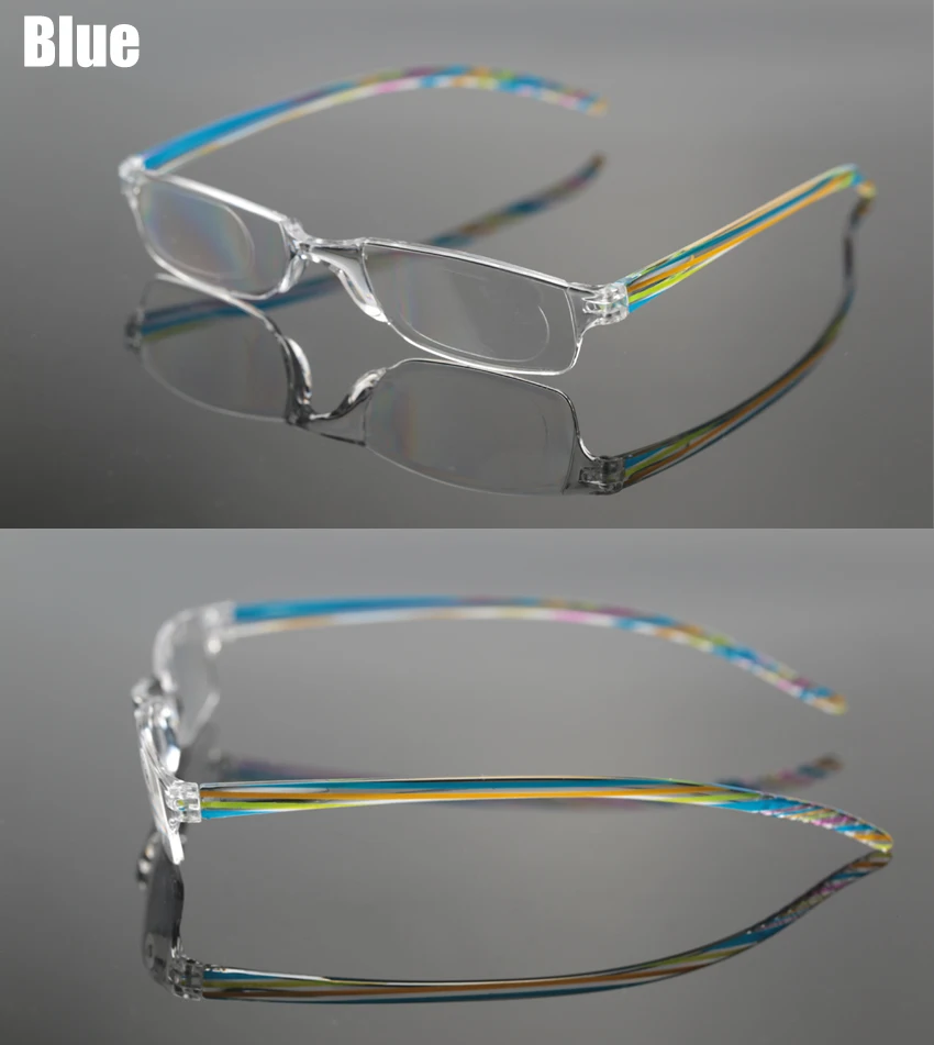 -SOOLALA 3 шт./лот без оправы в полоску Интегрированные Очки для чтения для женщин и мужчин сверхлегкие прозрачные линзы дальнозоркая Лупа Очки для чтения-Пластиковая рамка и объектив-Ультралегкие прямоугольные солнцезащитные очки без оправы-Яркие полосатые ножки с нескользящей подошвой-Модные, удобные, товары первой необходимости-Лучший выбор подарков для всех женщин и мужчин-Ширина линз: 48 мм/1,88 дюйма, высота: 24 мм/0,94 дюйма, длина моста: 18 мм/0,7 дюйма, длина дужки: 137 мм/5,39 дюйма, общая Рама: 131 мм/5,15 дюйма-Прочный, легкий, модный дизайн прямоугольной рамы,Высокое качество продукции с низкой ценой по прейскуранту завода-Поставляется с фирменной "SOOLALA" чистой тканью и мешочком