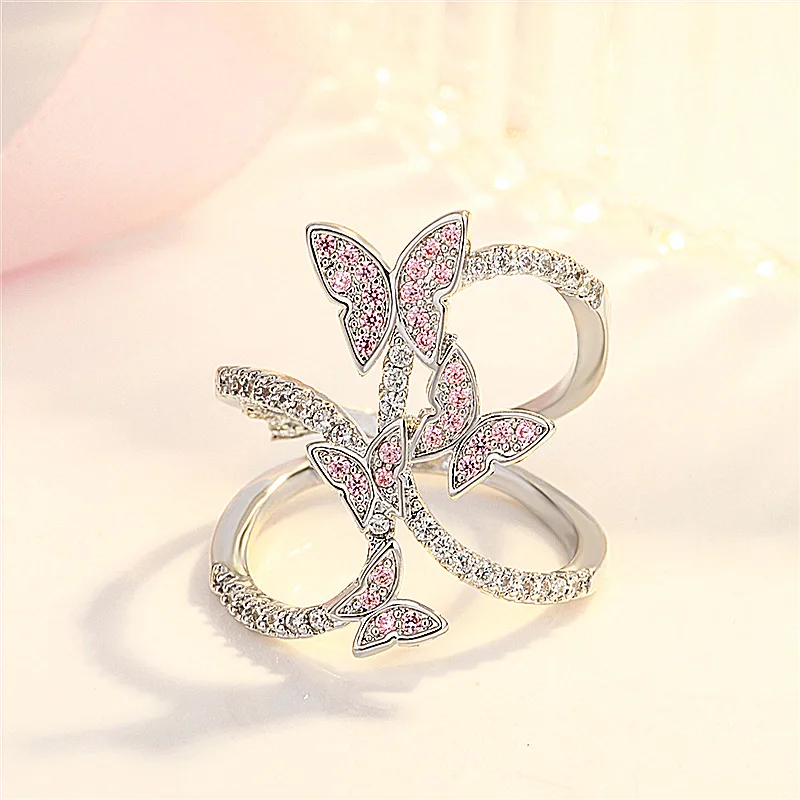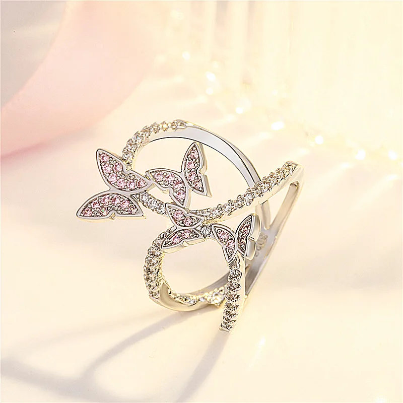 Женские кольца Lateefah, новинка 2020, светильник-бабочка с розовыми кристаллами, крылья из циркона, обручальное кольцо для женщин, модные ювелирные кольца, акция