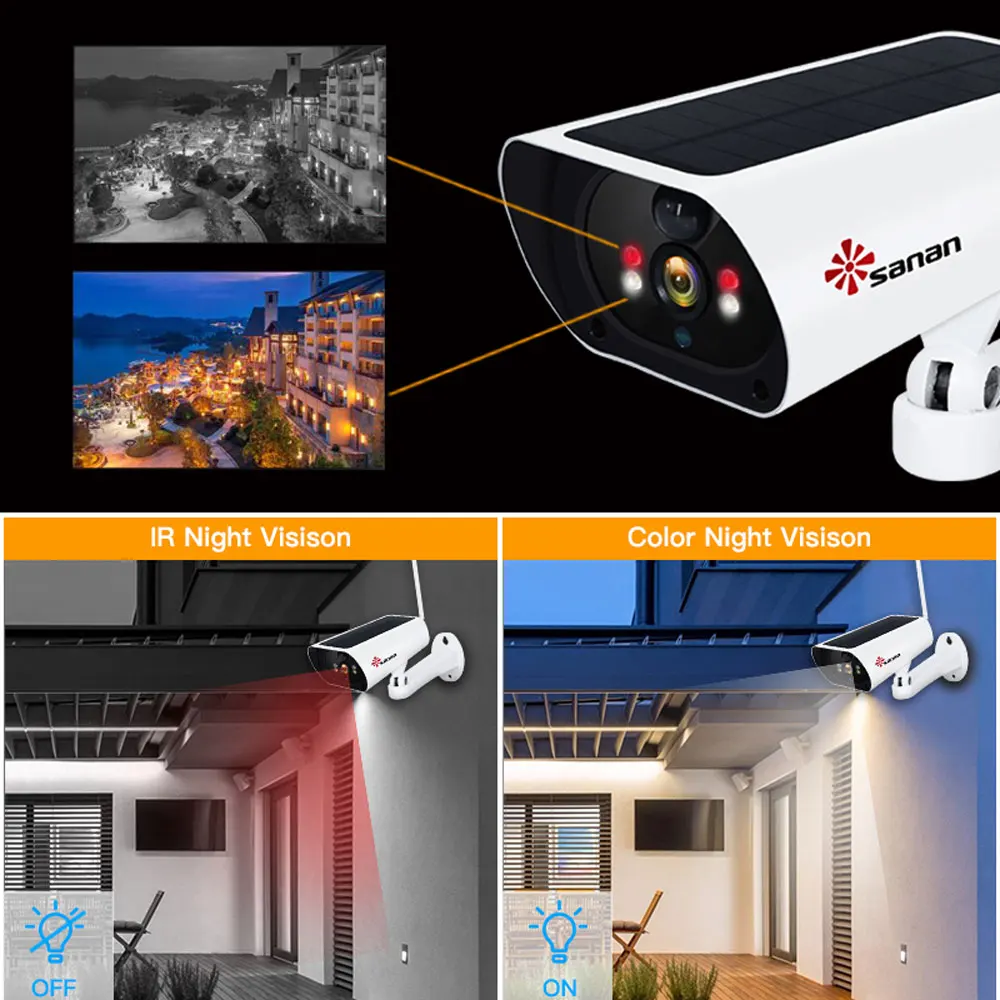 SANAN Солнечная камера безопасности WIFI IP наружная 1080P 20 м полноцветная камера ночного видения с батареей PIR/радар сигнализация CCTV