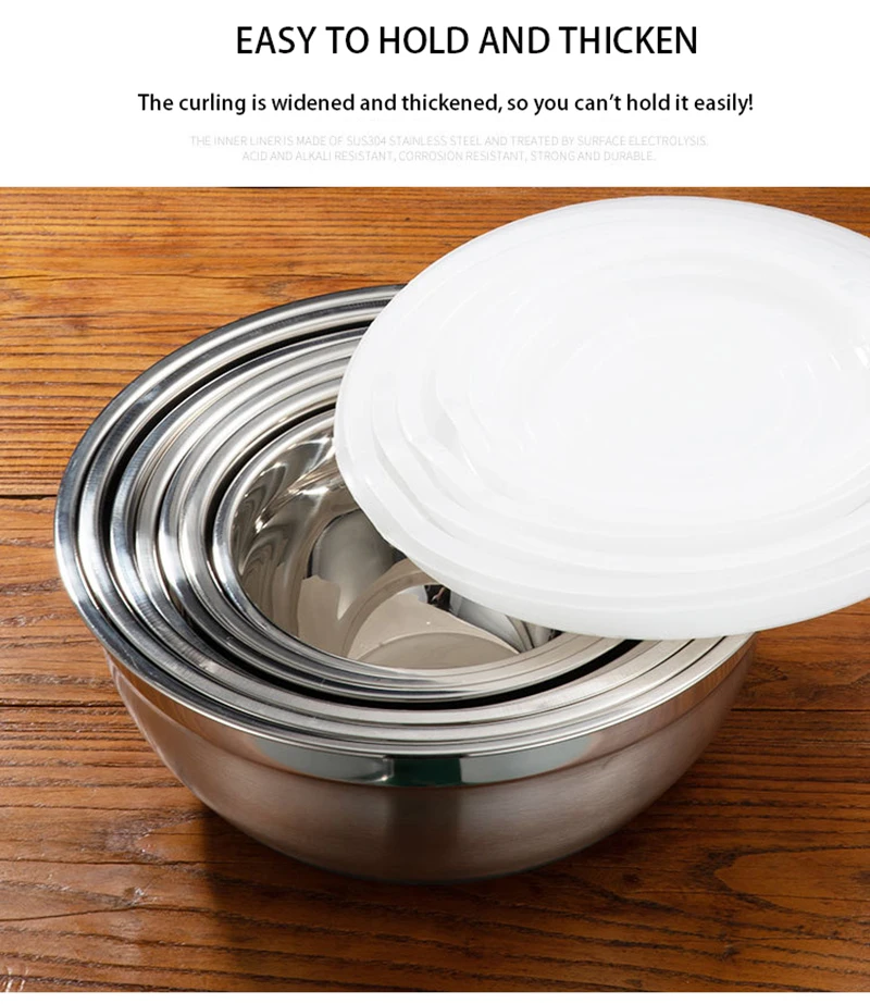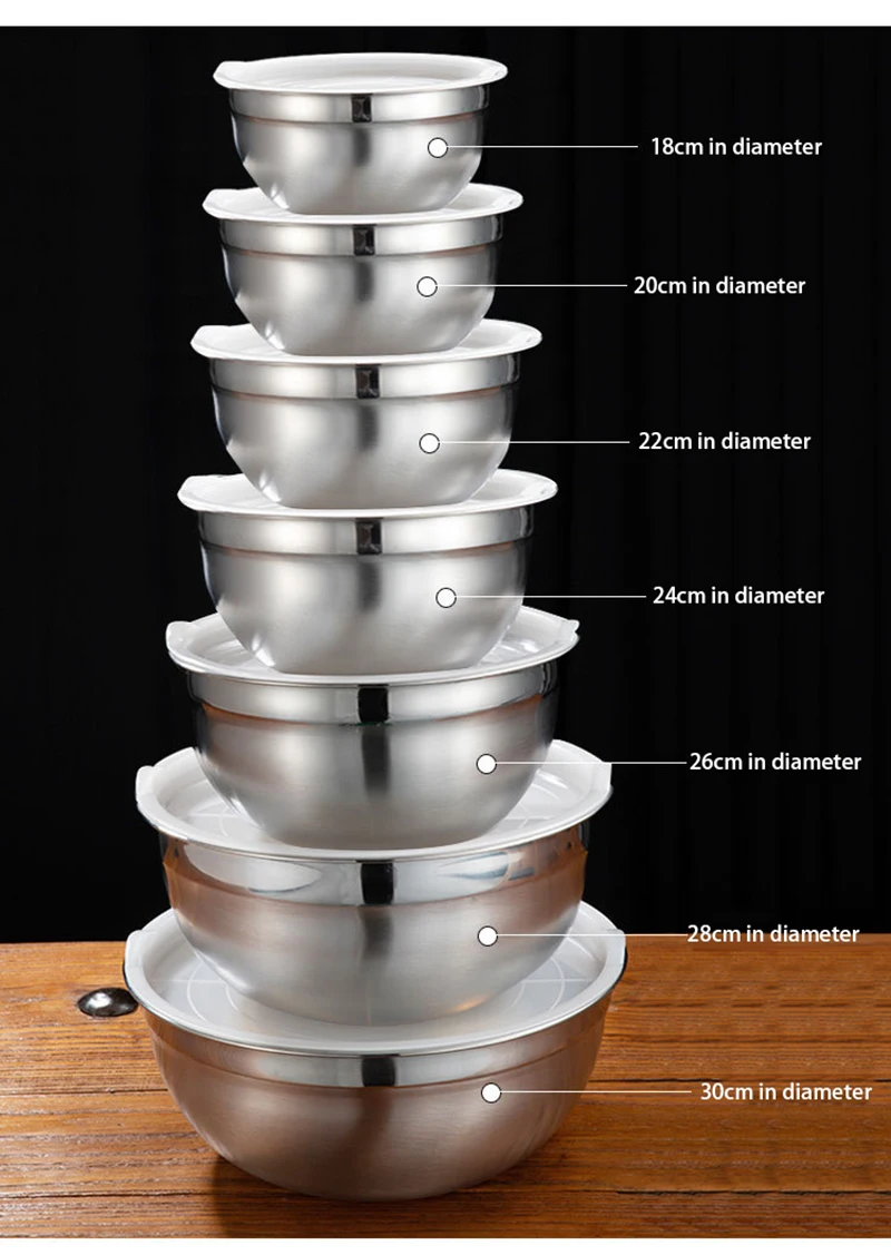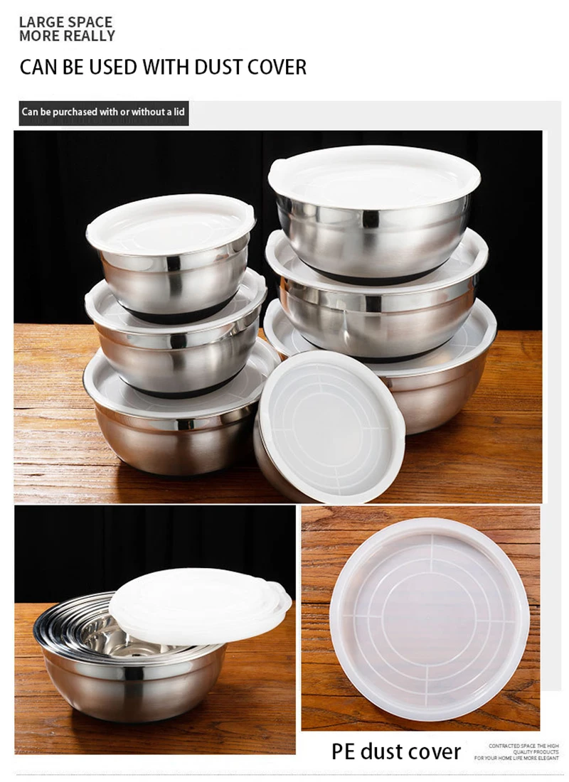 7 шт./компл., большие глубокие миски для смешивания из нержавеющей стали, нескользящие матовые миски для взбивания, набор, миски для салата, миски с крышками