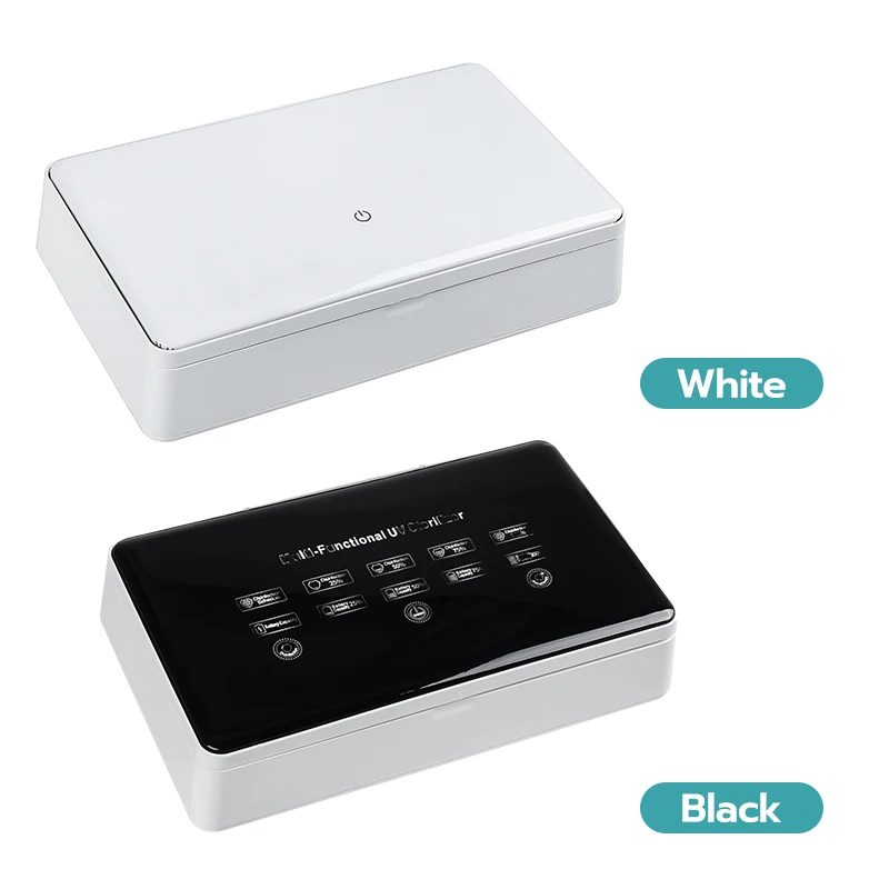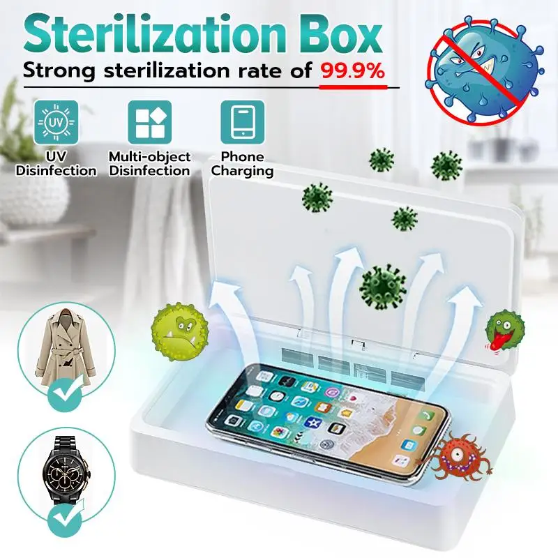 ? [Портативный стерилизатор] наш стерилизатор для телефона стильный дизайн, эргономичный и компактный в конструкции, так что вы можете носить его везде, где бы вы ни находились. В частности, этот стерилизатор для мобильного телефона питается от настольного зарядного устройства USB для ноутбука. Путешествуете ли вы дома или в машине, вы можете использовать мобильный телефон чехол для дезинфекции мобильный телефон.