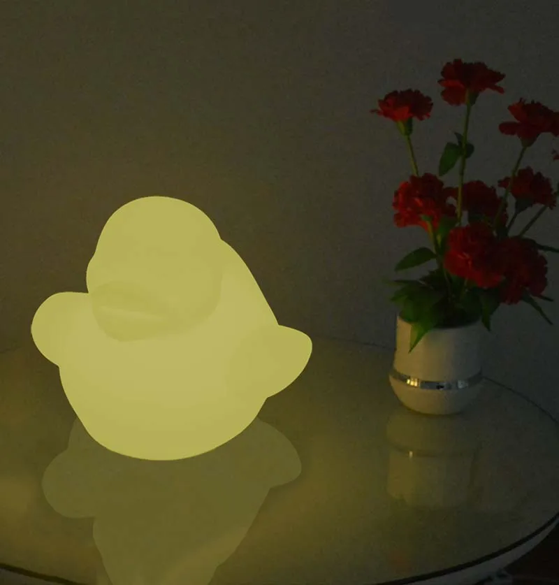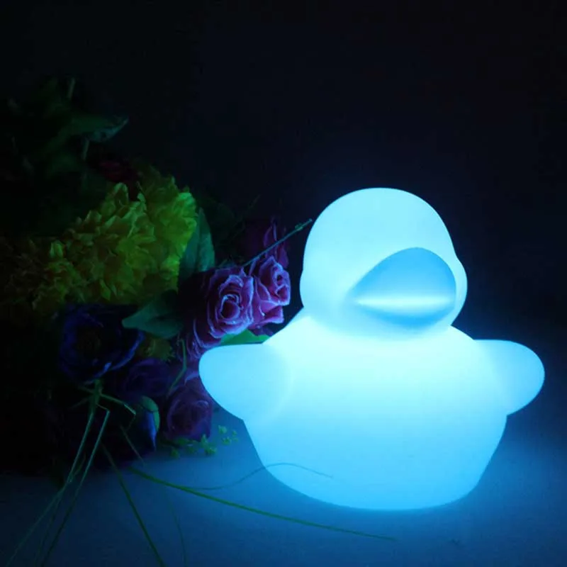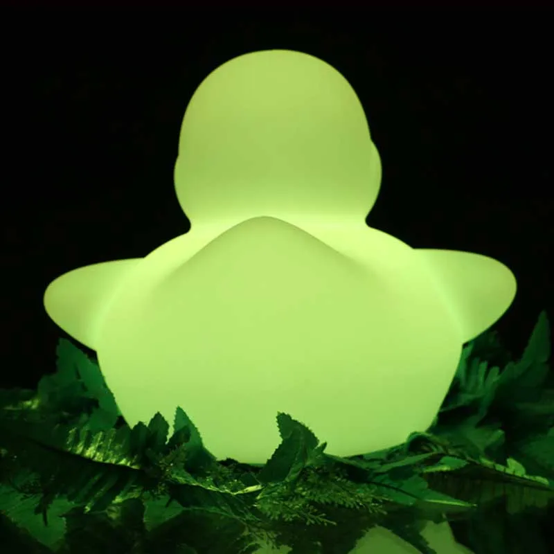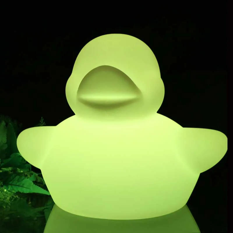 Светодиодный светильник в виде утки производится изготовлены методом ротационного формования процесса. Материал экологически чистый PE пластик. Встроенный светодиодный светильник зеленый светильник ing source имеет энергосберегающие характеристики, защиту окружающей среды и длительный срок службы. Этот вид продукта подходит для декоративные светильники в домашних интерьерах для улучшения качества жизни, такие как комнаты, гостиные, офисы, отели, рестораны, развлекательные центры и т. Д. Изделие легко носить с собой, не боясь упасть, не боясь сверкать, дождя и стойкости к истиранию.