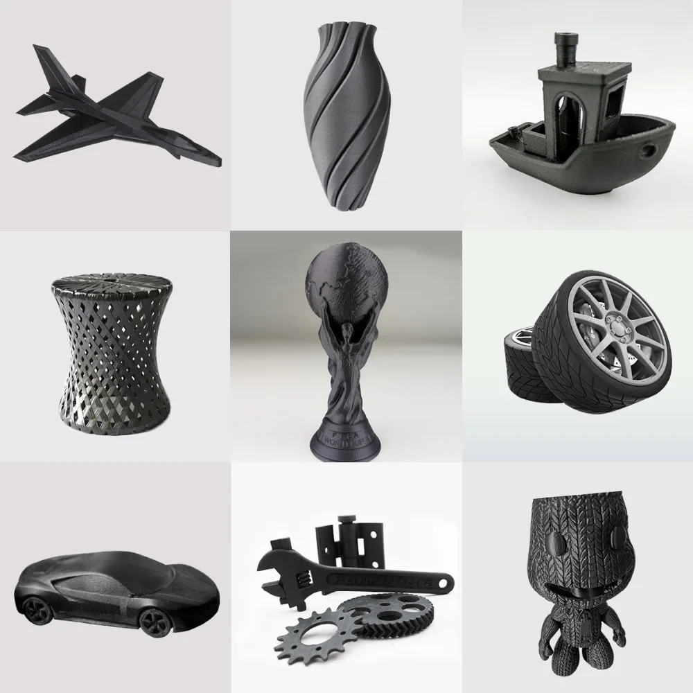 PLA Carbon Fiber параметр Диаметр провода: 1,75 мм Допуск: ± 0,02 мм Температура печати: 200-230 ℃ Температура нижней пластины: необходимо наносить клей, когда не нагревается Нагрев 60-80 ℃ без клея Напряжение (кгс): 11-14 Индекс расплава: 11-16 г/10 мин (220 ℃, 2,16 кг) Удлинение при разрыве: 3% Скорость печати: 50-100 мм/с Пузыри: 100% нулевые пузыри Вес нетто: 1 кг Вес брутто: 1,3 кг/рулон Длина: 1,75 мм (1 кг) = 300 м PLA Carbon Fiber Особенности 1. Защита окружающей среды и нетоксичность; 2. Материал волокна с высокой прочностью и высоким модулем; 3. Высокая жесткость, низкая плотность и вес светильник; 4. Хорошая адгезия между слоями; Подходит для всех моделей 3D принтеров FDM, подходит для Тонкая модель с принтом и жесткая текстура Требуемая модель продукта.