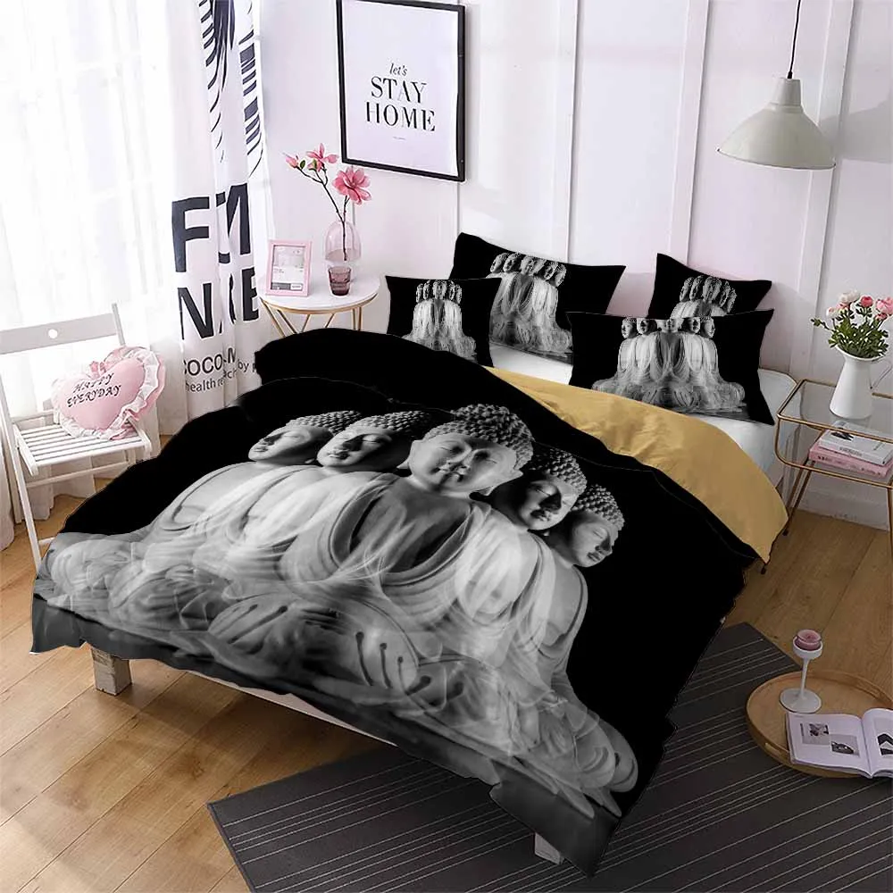 Будда статуя набор пододеяльников буддийская Йога Лотос культура Комплект постельного белья Королевский размер Черный Белый комплект постельного белья Мандала постельное белье пододеяльник дропшиппинг