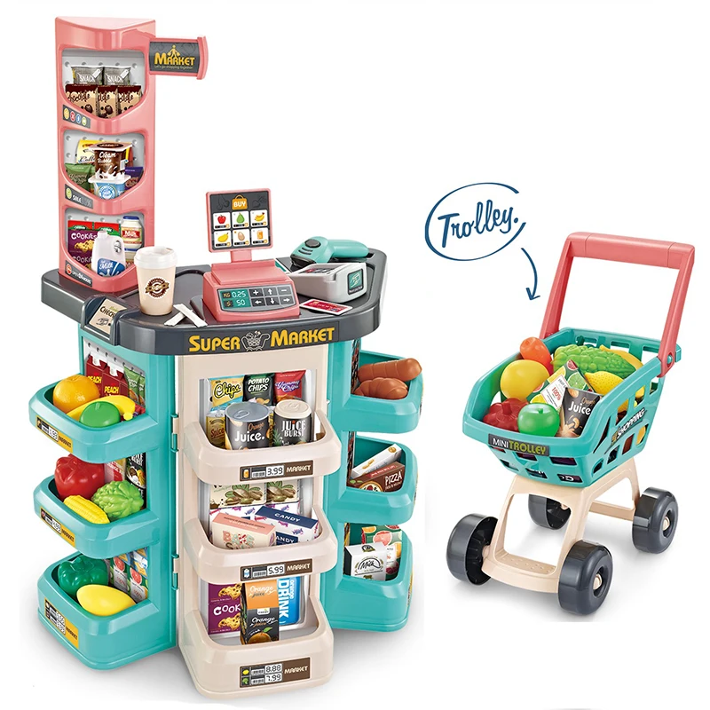 Имитация супермаркета, набор кассовых аппаратов для девочек, супермаркет, корзина для покупок, детские игрушки для ролевых игр, обучающие игрушки