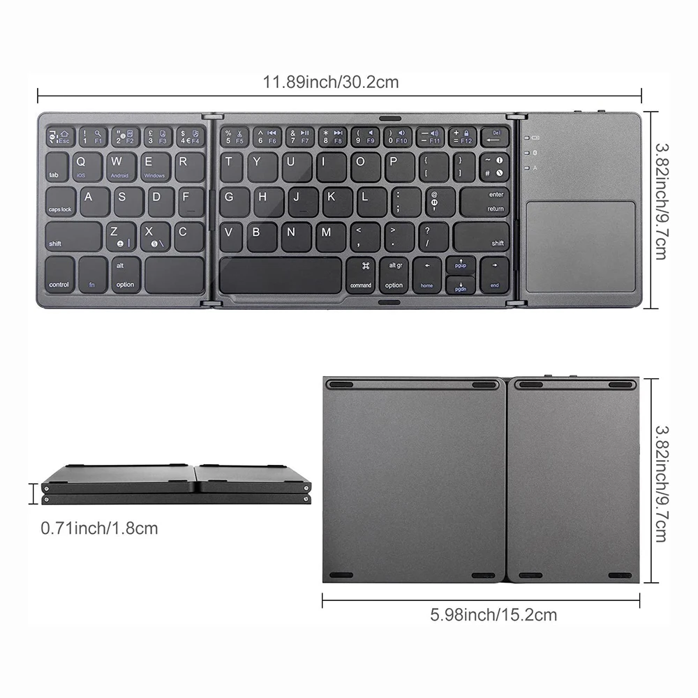 Размер клавиатуры: 304,5*97*95*8 мм (открытый) 152,3*97,95*14 мм (в сложенном виде)